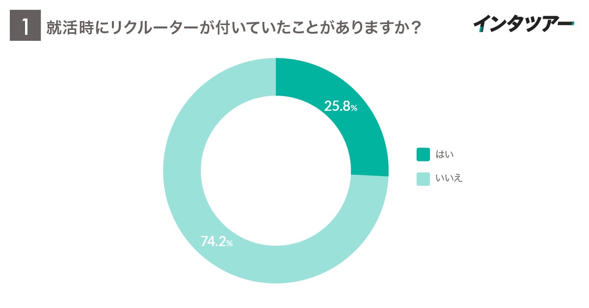 ● インターンシップ後にはリクルーターがついていた学生が半数 74.0%が「ずっと同じ人」