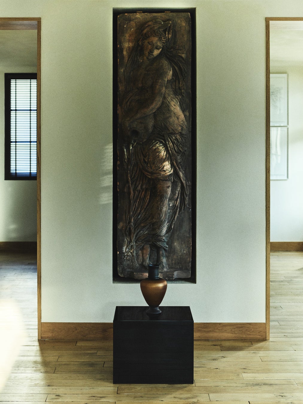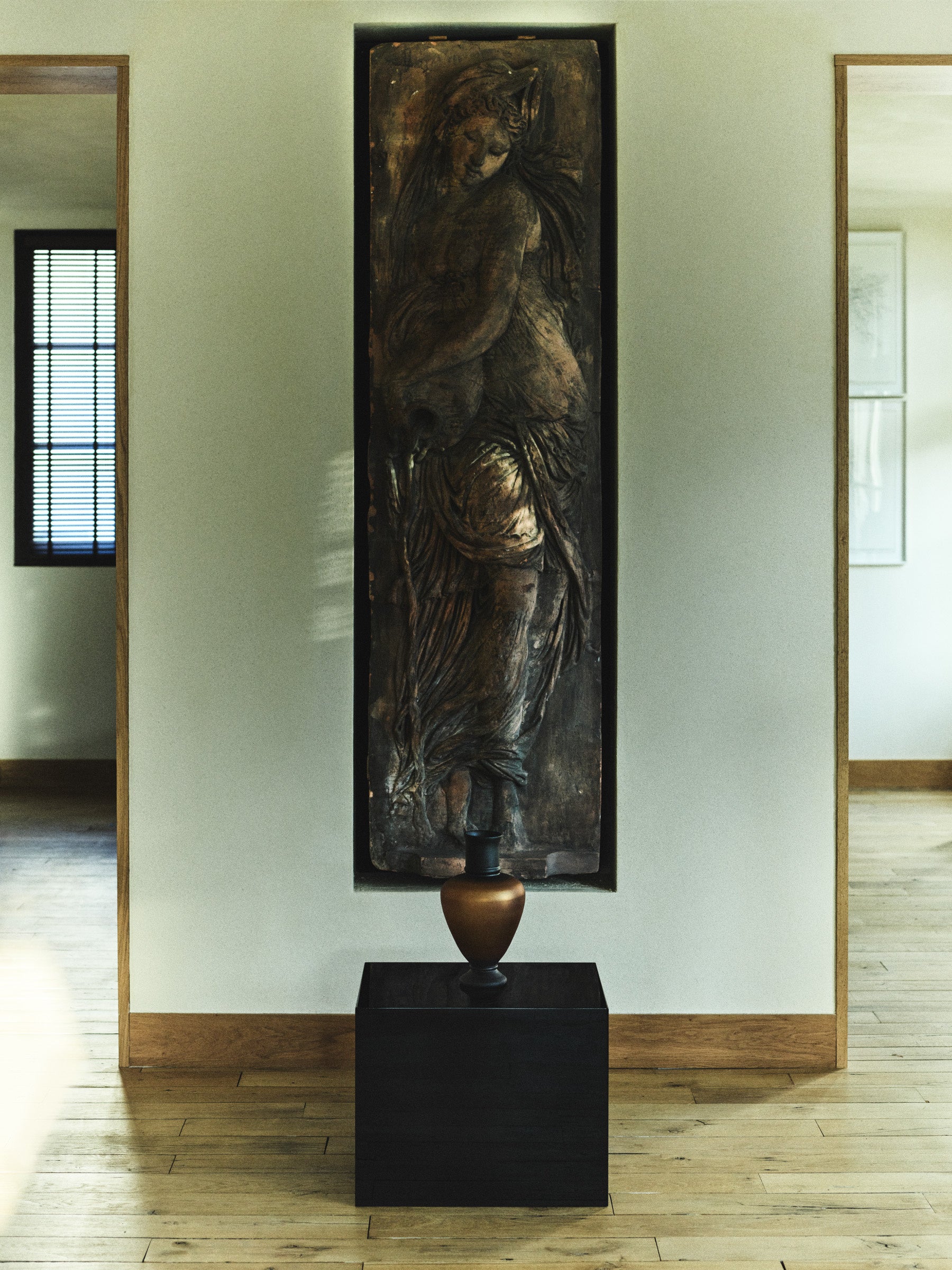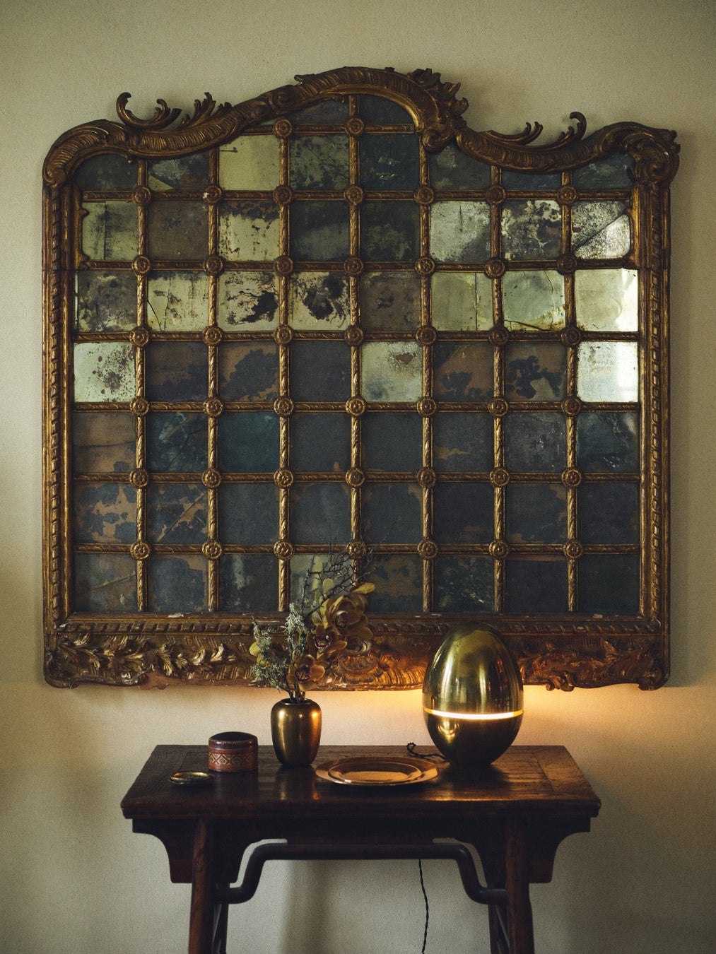 素材は本コレクションの重要な要素です。真鍮や銅の花瓶やランプ、オニキスの箱、虹色に輝く手吹きガラスの器などです。編み込みのバスケットには銀メッキ加工が施され、手作業で仕上げたラッカーのピースには伝統技術の精緻さと豊かな質感が表れています。透明感と不透明感、光沢感とマット感、重厚さと輝き。このような仕上げの対比がコレクションの視覚的・触覚的な魅力を形づくっています。