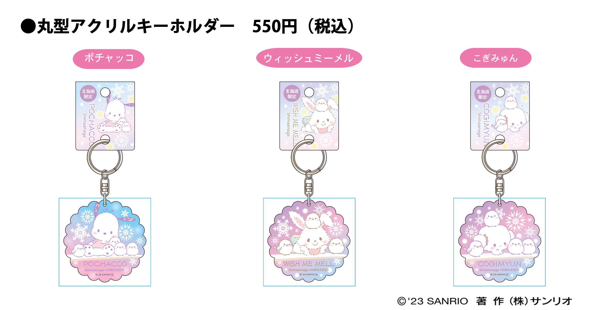 ・丸型アクリルキーホルダー(ポチャッコ・ウィッシュミーメル・こぎみゅん) 550円(税込)