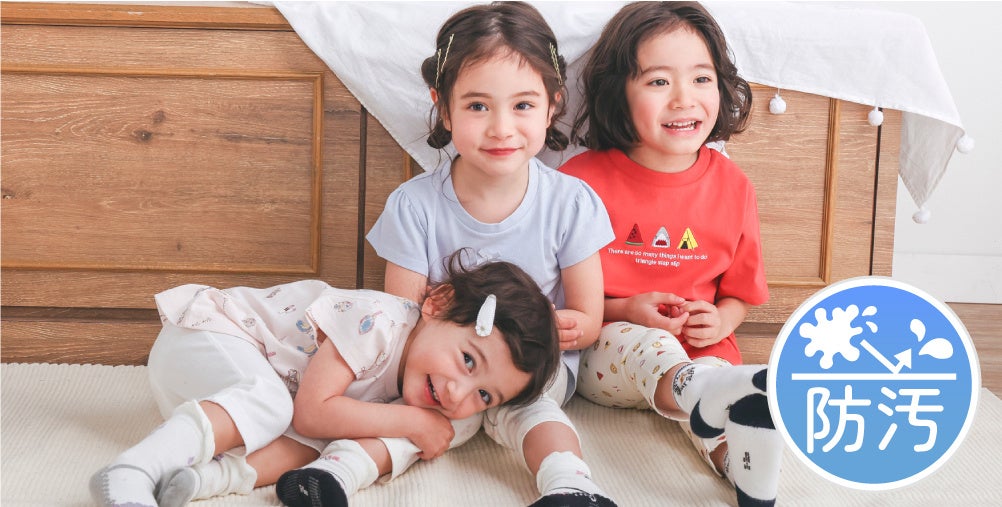 お砂場などで汚れやすいパンツも「防汚加工」付きでお洗濯がぐっと楽に!