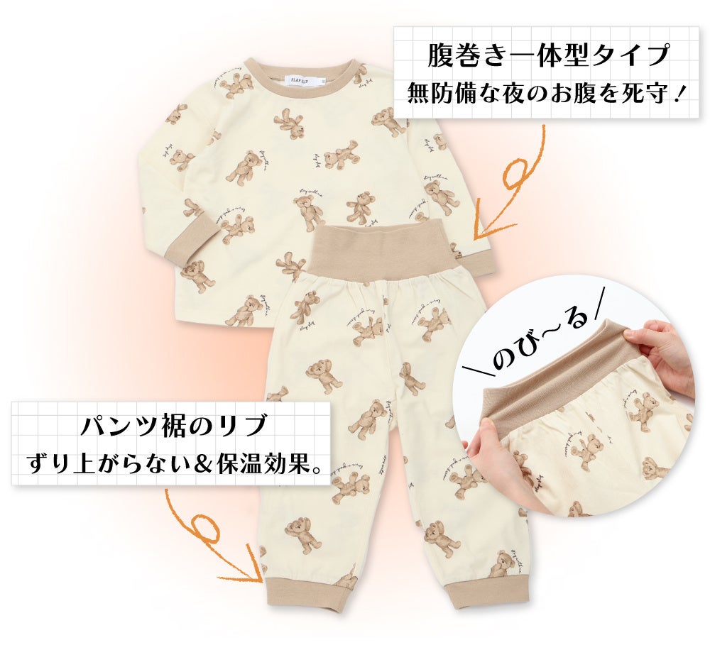 腹巻部分でお腹をガード!寝冷え気にせず朝までぐっすり。
