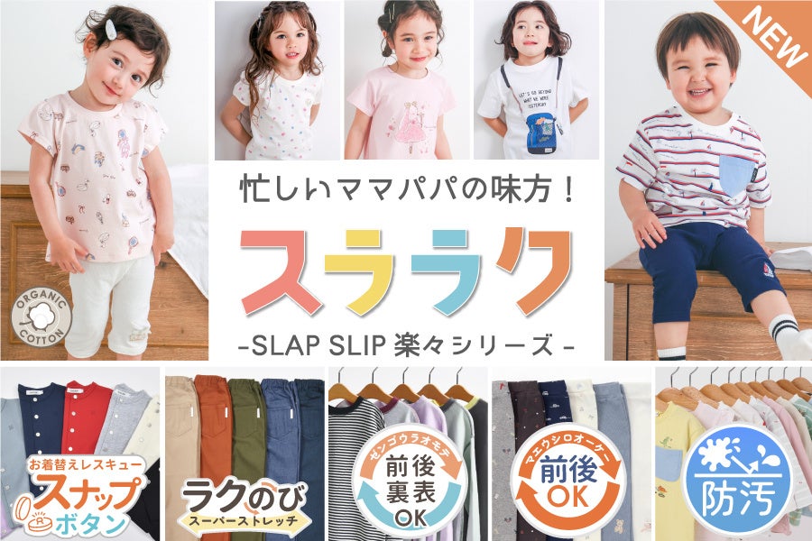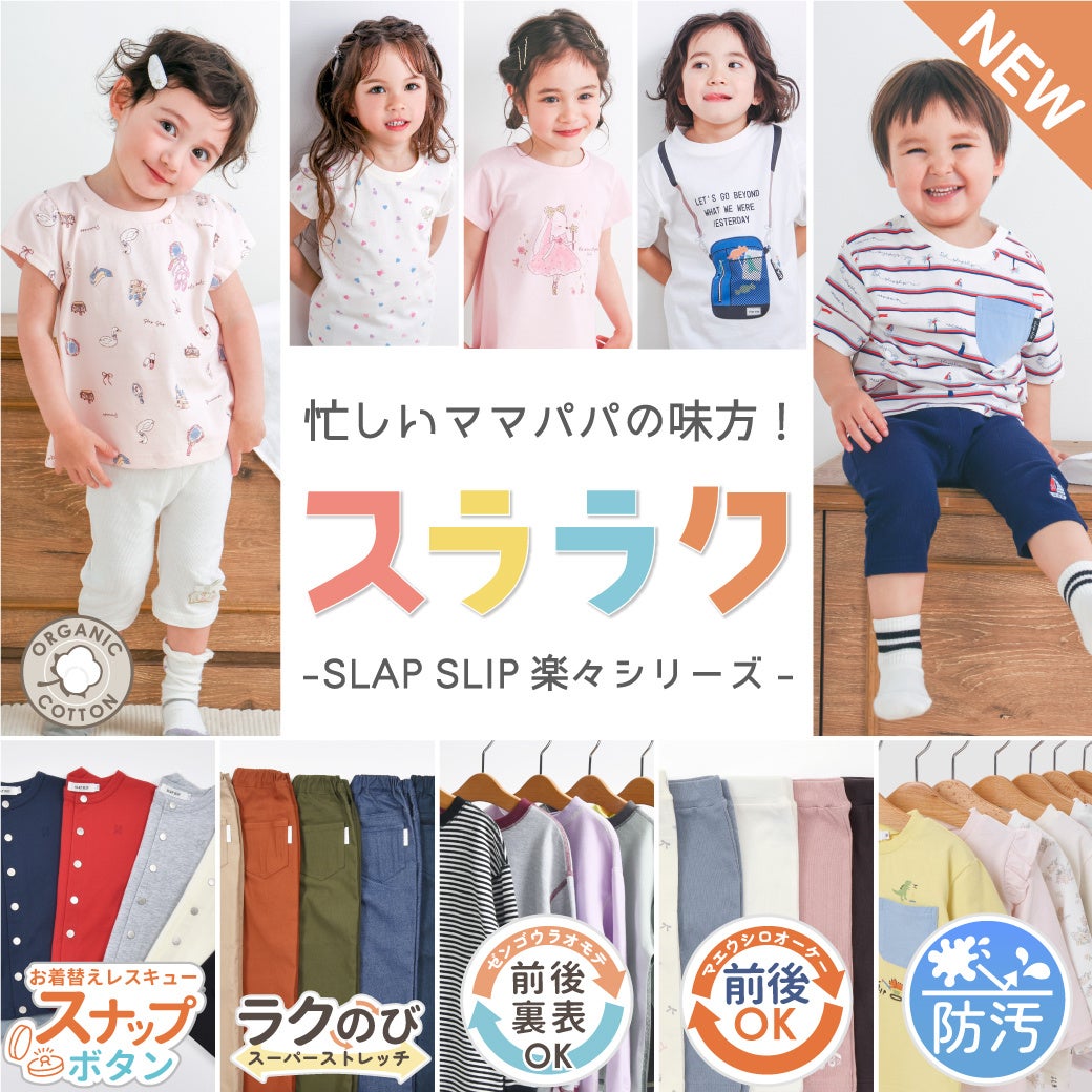 子供服ブランド「SLAP SLIP(スラップ スリップ、株式会社べべ)」から「スララク」楽々シリーズに新作が登場!ぐっすり睡眠をサポートする「みんみんパジャマ」も初登場♪