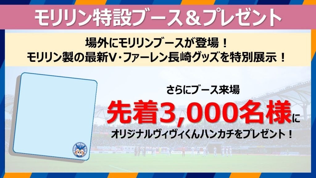 モリリンはV・ファーレン長崎の考える平和への想い、スポーツを愛する気持ち、クラブ理念に賛同し、スポンサーとしてチームを支援しています。協賛を通じ、スポーツの普及、スポーツ文化の振興、地域活性化に寄与して参ります。