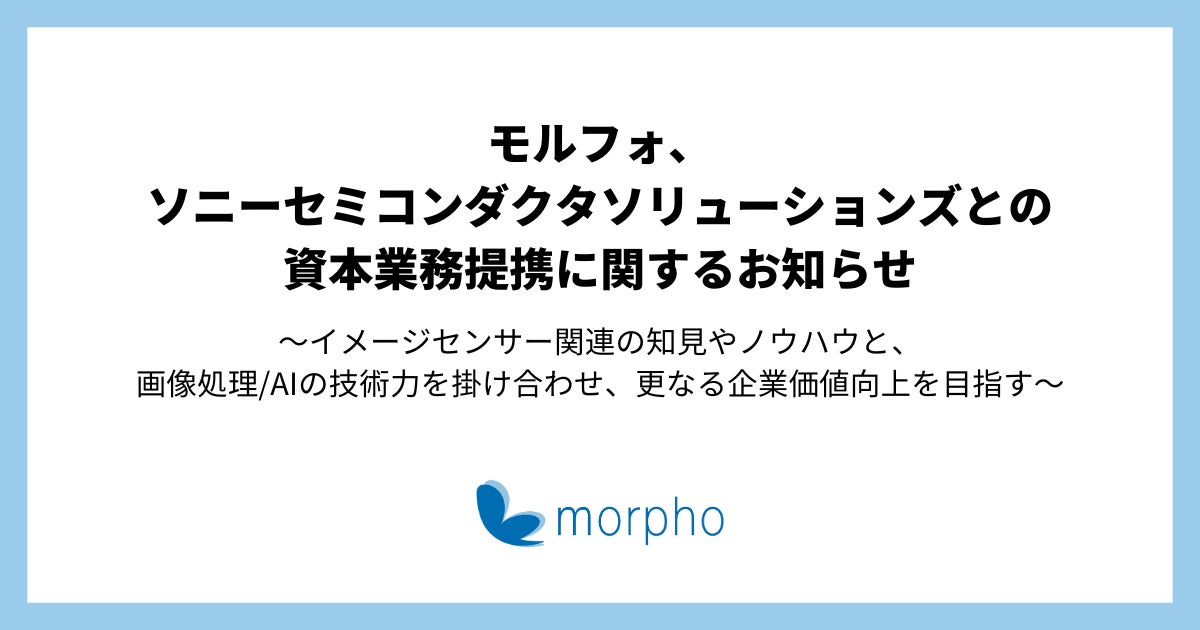モルフォ、ソニーセミコンダクタソリューションズとの資本業務提携に関するお知らせ