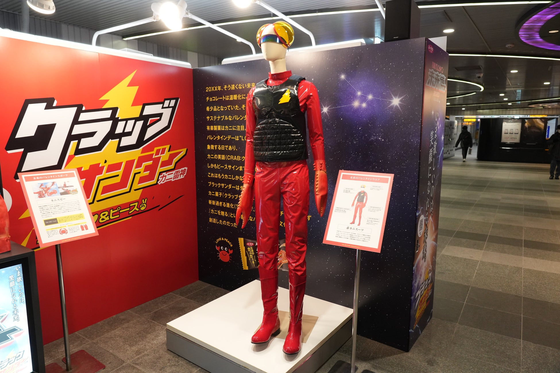 東京・渋谷会場では、誕生の背景やストーリー展示、カニの展示を実施しています。