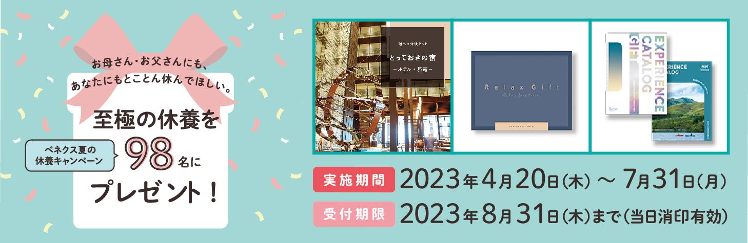 - お母さん・お父さんにも、そして、あなたにもとことん休んでほしい。そんなベネクスの思いを込めた夏の休養キャンペーン