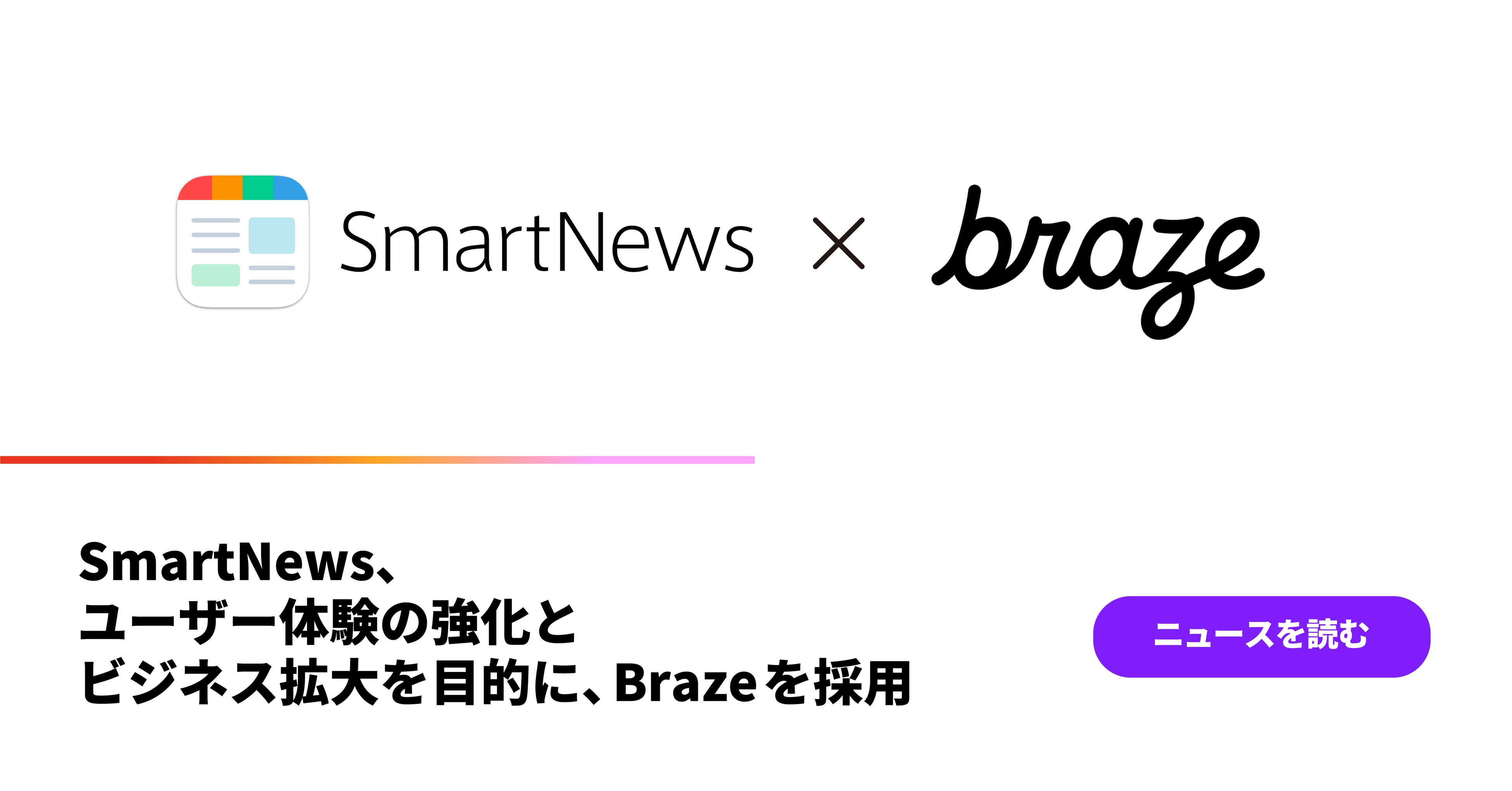 カスタマエンゲージメントプラットフォームのリーダーである Braze株式会社(読み方:ブレイズ、本社:東京都港区、代表取締役社長:水谷 篤尚、以下「Braze」)は、世界中の良質な情報を必要な人に送り届けることをミッションとするスマートニュース株式会社(所在地:東京都渋谷区、代表取締役社長 CEO:浜本階生、以下「スマートニュース」)がユーザー体験の強化とビジネス拡大を目的にBrazeを採用したことを発表しました。
