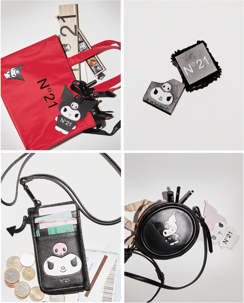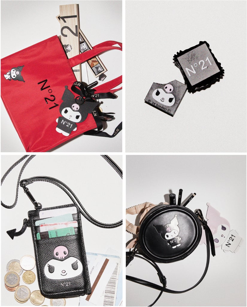 株式会社サンリオの黒いずきんとピンクのどくろの「KUROMI」は乱暴者に見えるけれど、実はとっても乙女チック!?。ギャップが魅力、そしてブラックが似合うN21とKUROMIのためのラインアップ。黒いしっぽがゆれるロングストラップつきのレザーカードケース、「KUROMI」がプリントされた「N21」の定番ロゴ入りバッグやチャーム、Tシャツやスウェットなど、大人のためのコレクション。