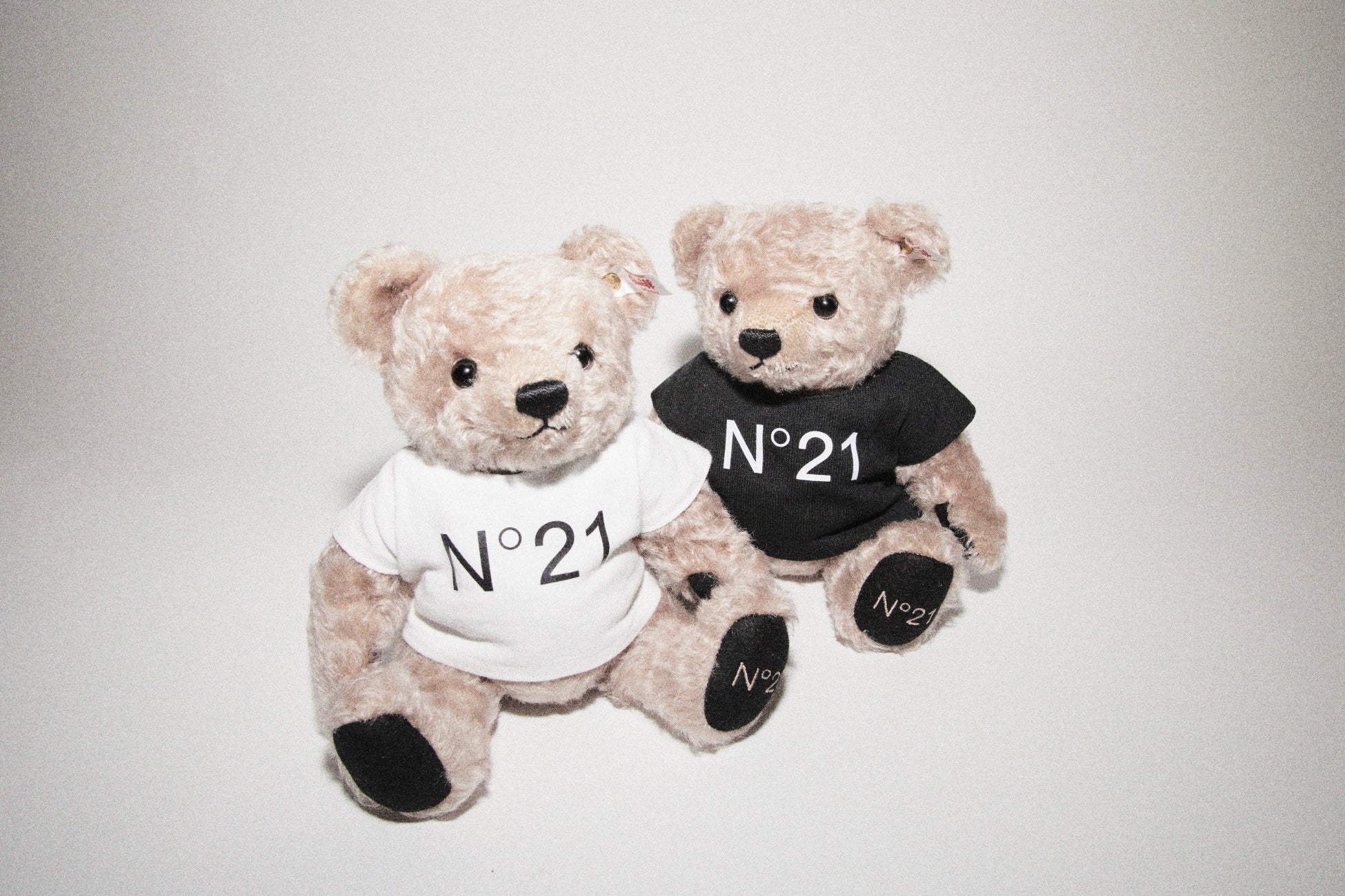 ドイツの最高級ぬいぐるみブランド「Steiff(シュタイフ)」との新作コラボレーションでは、ヌードベージュカラーのテディベアがロゴ入りTシャツを着て登場。Tシャツの背中に取り付けられたリボンも忠実に再現され、後ろ姿まで愛らしいデザインに仕上げました。