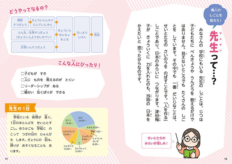 偉人たちのエピソードを読んだあと、その偉人のしごとについて知れるのが本書の特徴です。読んで終わりにならず、自分の将来と重ね合わせることができるので、視野が広がり未来につながります。