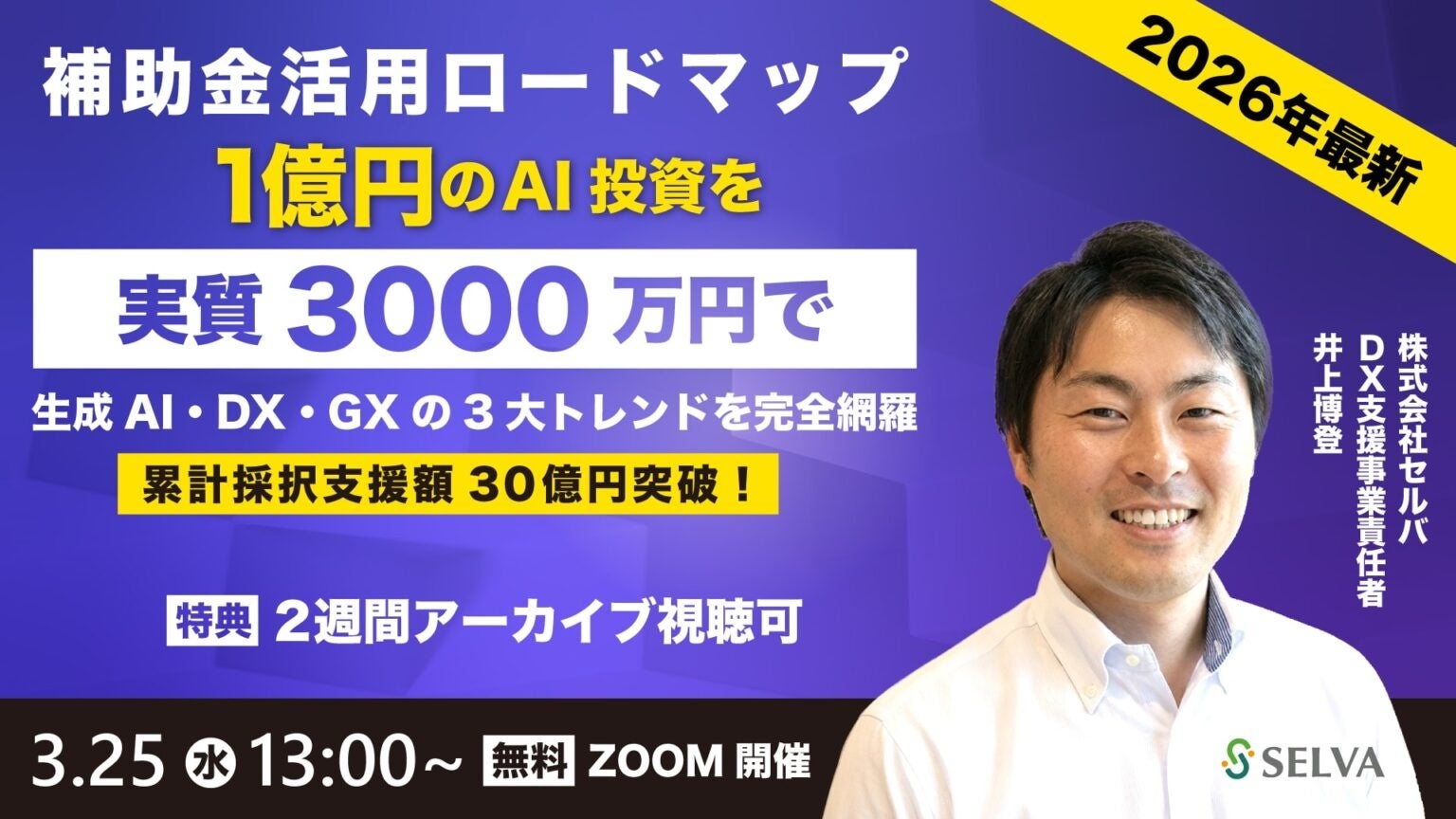 【ウェビナー】2026年最新。補助金×AI投資で経営を加速させる!採択率を劇的に上げる「AI盛り込み術」【3月25日13時より開催】