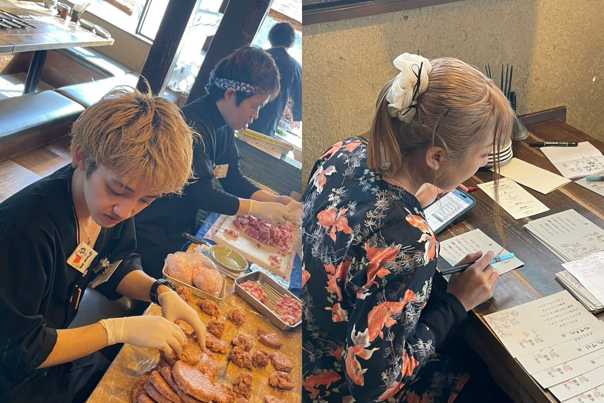 ❝ 一年後、みんなの成長を見せる場を作ろう!❞ この思いを実現するため、営業日本番の3ヶ月前から本格的に準備を開始。各店舗の営業時間やシフトの違いを乗り越えながら、11名のルーキーたちは企画・運営から尽力しました。メニュー構成、コース価格設定、原価計算など、すべてが手探りの状態からスタート。各店舗の先輩社員、総料理長、広報担当など、多くの方々のサポートを受けながら準備を進めました。