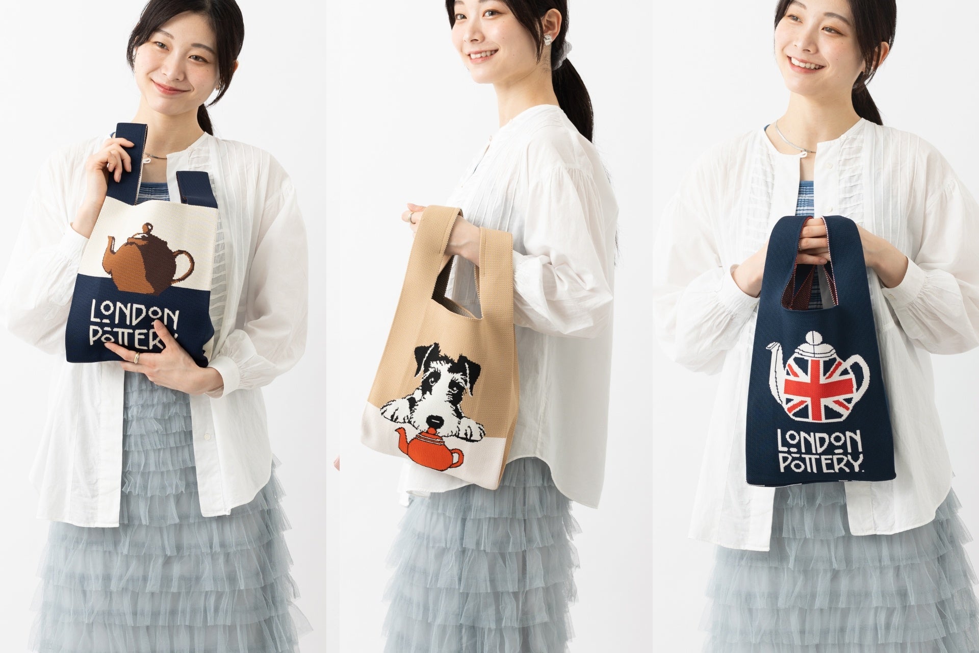 【紅茶好き必見】英国ティーポットブランド「LONDON POTTERY」から初のファッション雑貨が登場。ポットデザインのニットバッグ