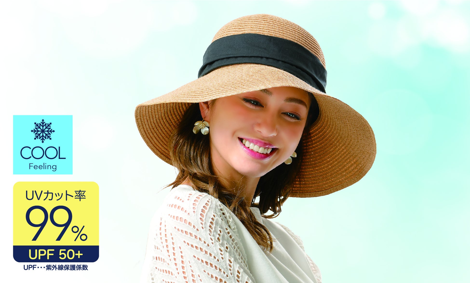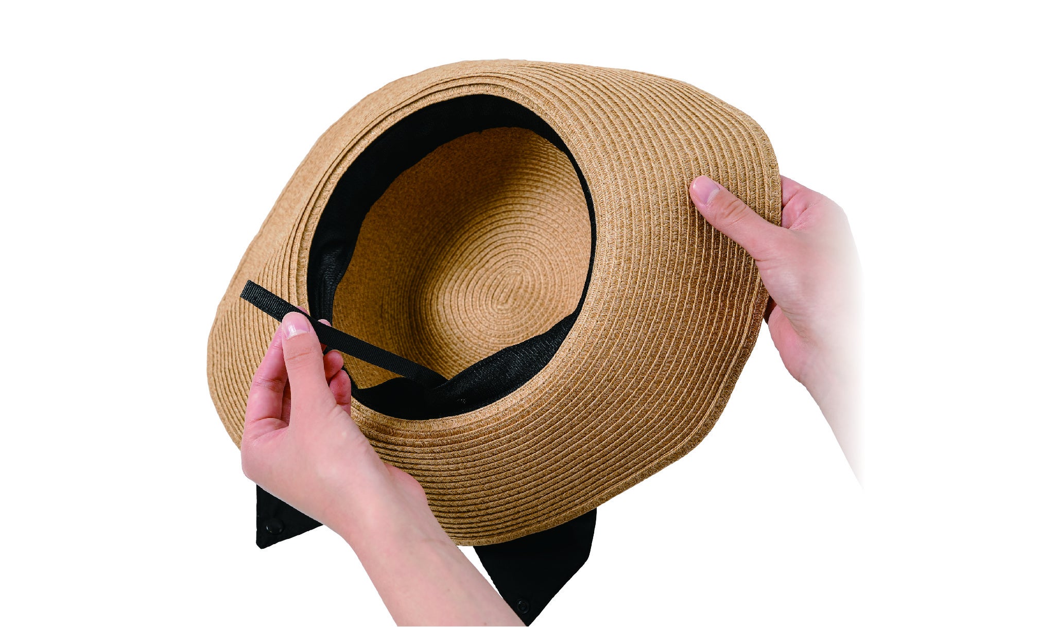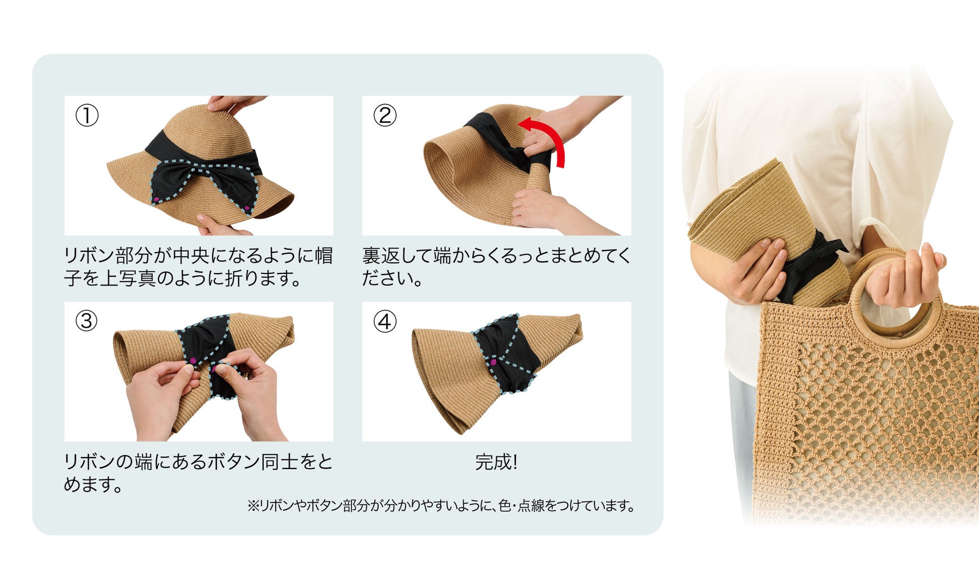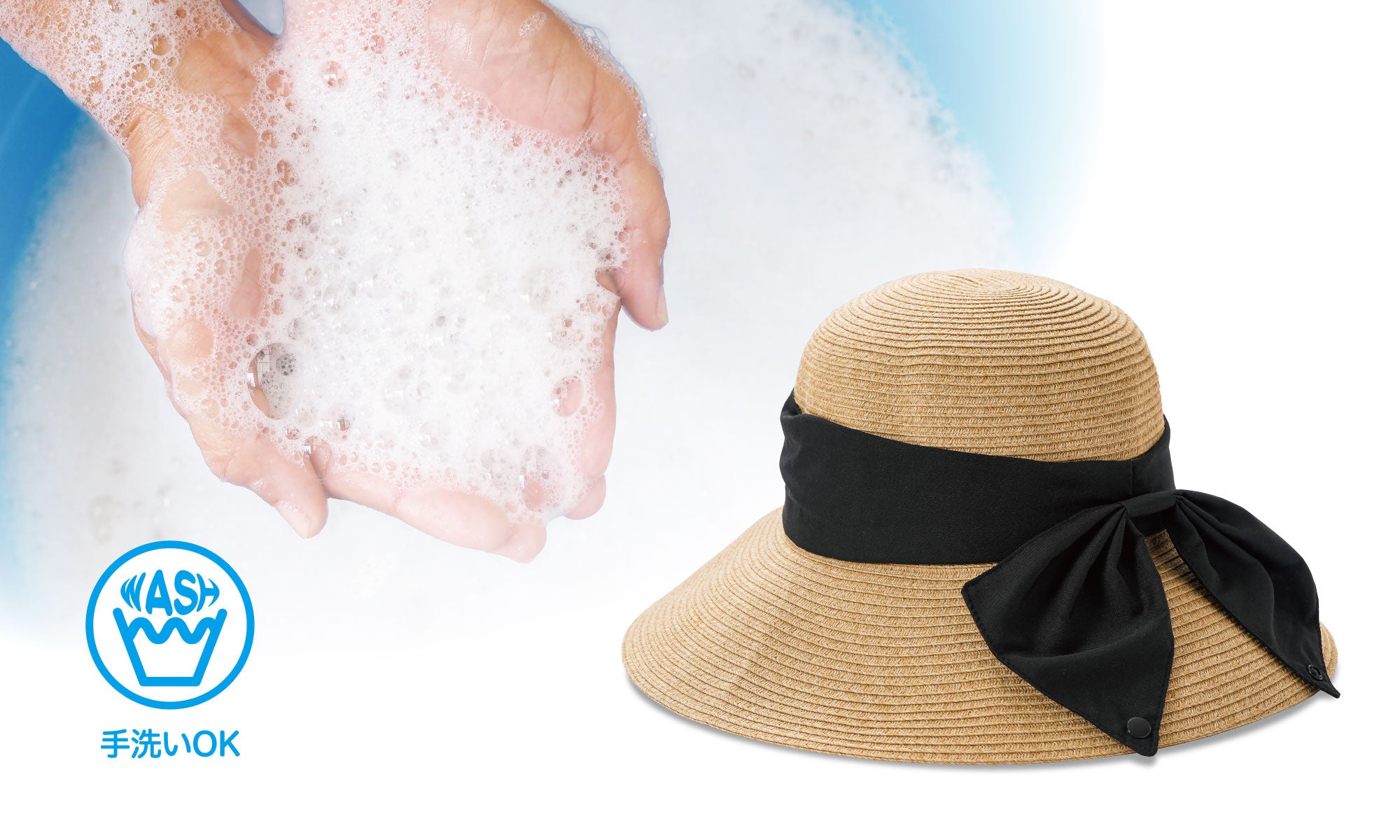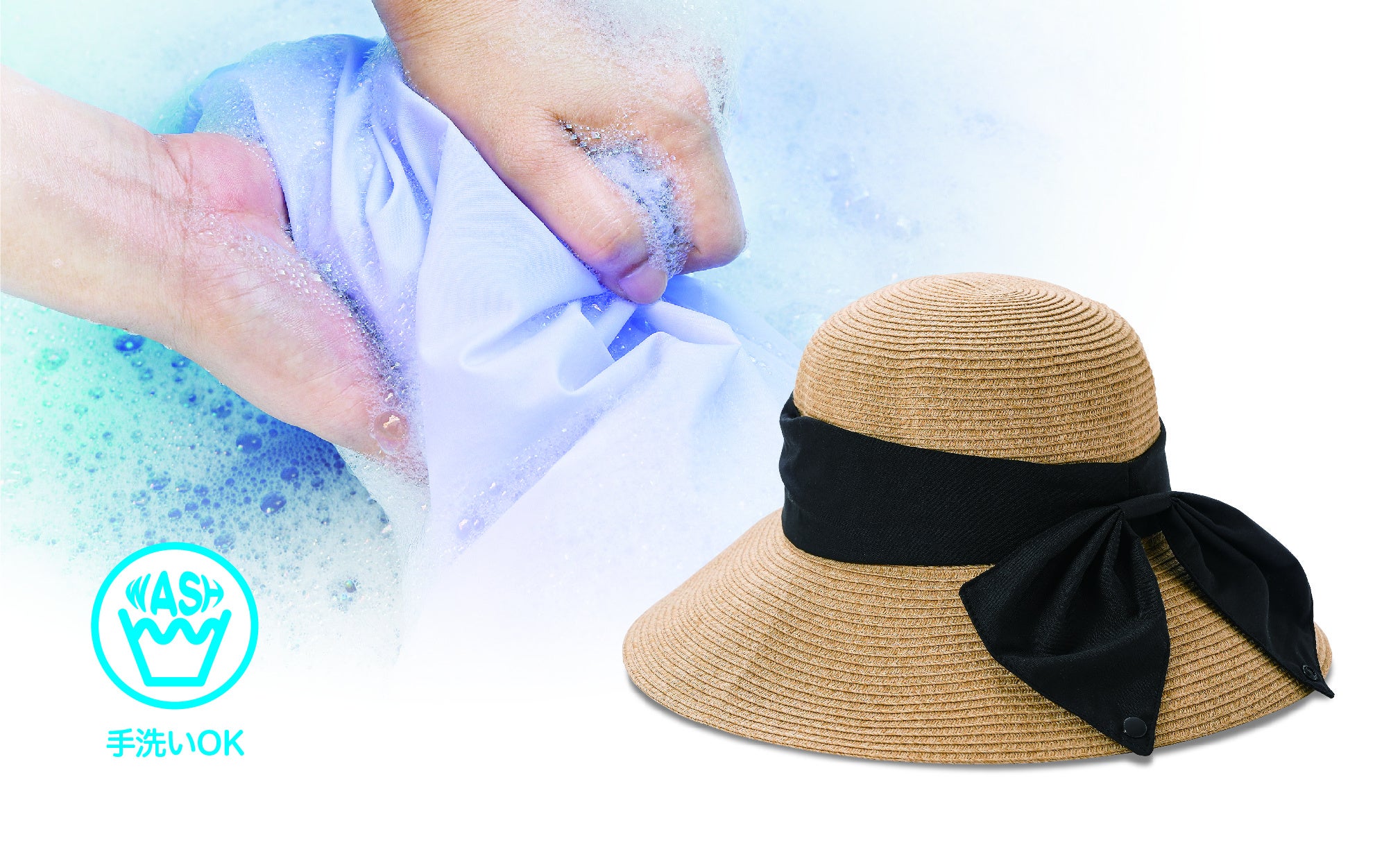 くるっとコンパクトにまとめて収納できる大きなリボン付き「UV&クール洗えるブレードハット」で、おしゃれに紫外線対策しましょう。