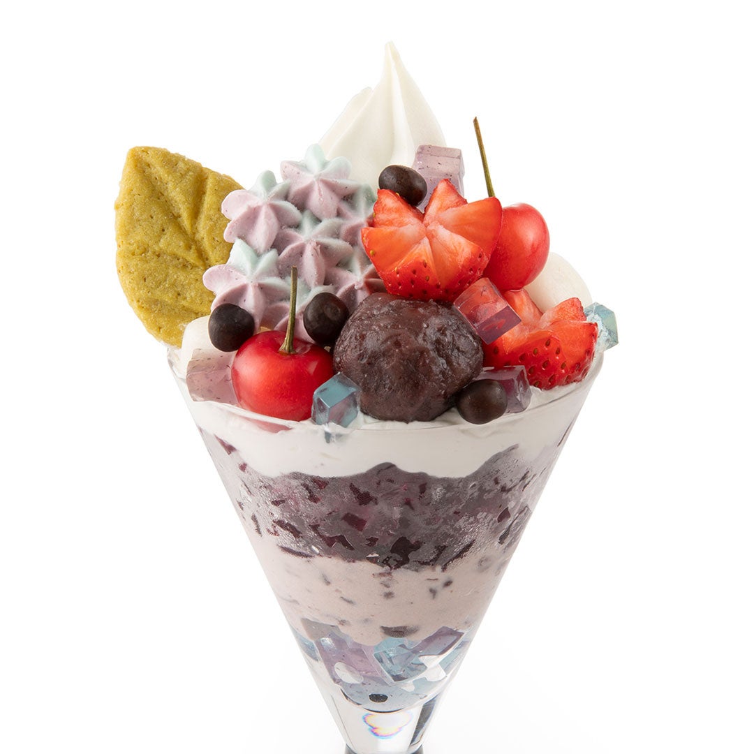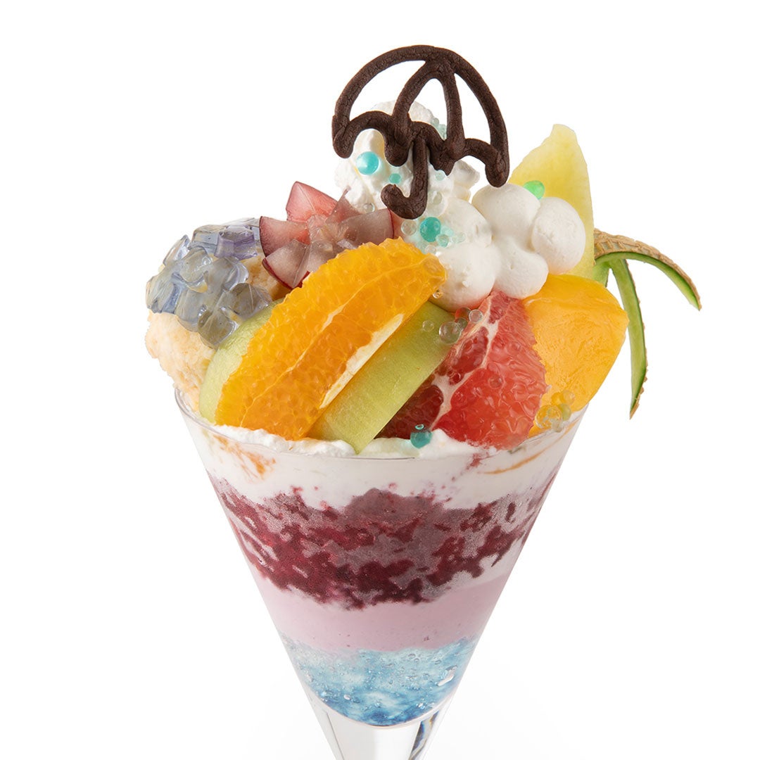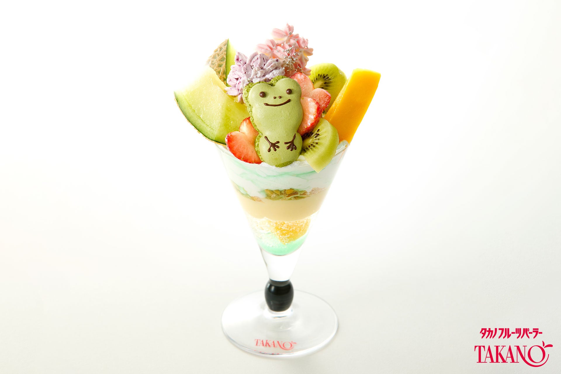 雨の多いこの季節でも気分が晴れるようにと、フルーツのさわやかさを生かしたパフェをご用意しました。紫陽花、カエル、てるてる坊主、傘、雫などをモチーフにし、店舗ごとにデザインの違う全6種類のパフェが登場します。