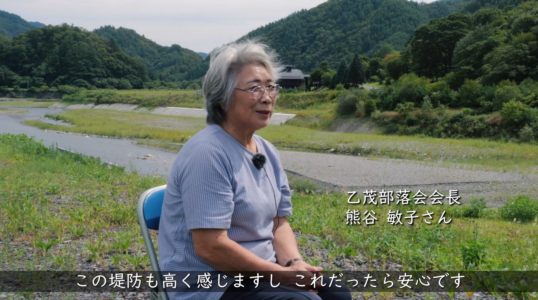 地域の方々の声では、安心・安全が確保されたことへの喜びや、地域の魅力について話していただいており、動画の最後には、地域の方々と一緒にサクラの苗木を植樹する様子を収め、未来への希望を込めています。