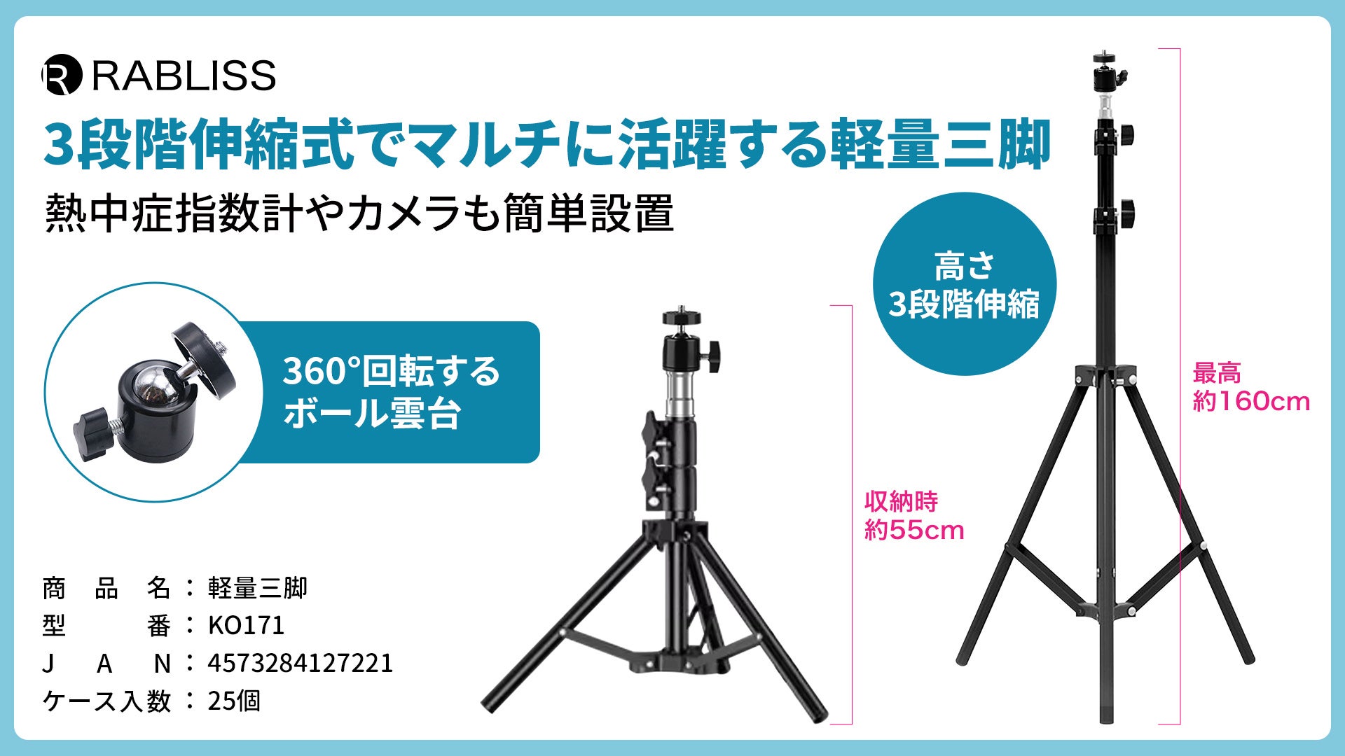 軽量かつコンパクトで持ち運び楽々。デジカメやスマホホルダー、熱中症指数計など様々な用途で使える三脚です!