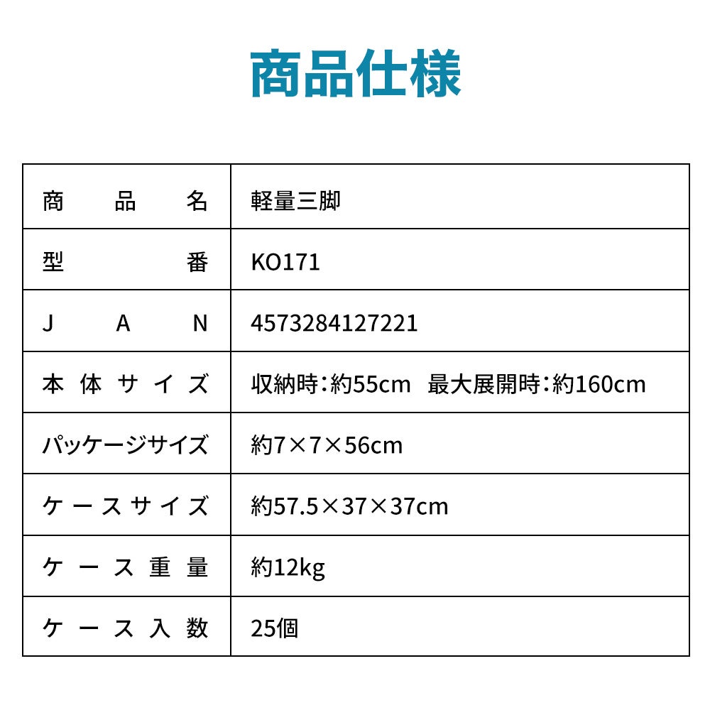 3段階伸縮式でマルチに活躍、持ち運び楽々の440g!軽量三脚 KO171 リニューアルのお知らせ