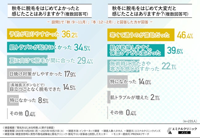 脱毛をはじめた季節、約半数が「秋」「冬」と回答!秋冬に脱毛をはじめてよかったこととは?