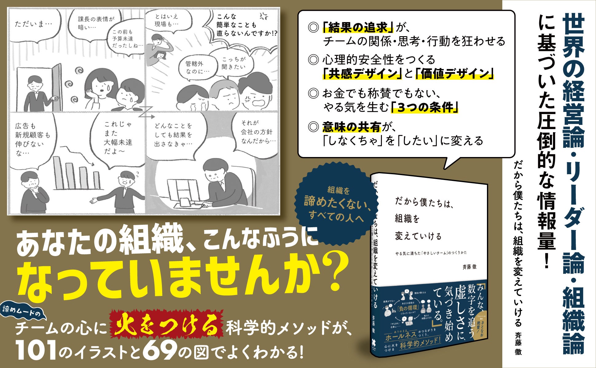 インターネット、リーマンショック、コロナウイルス……この数十年で、社会状況や人々の価値観は大きく変わりました。しかし多くの組織は、いまだに大量生産時代の管理主義のままです。明らかに時代遅れの戦略に違和感を持ちつつも、変えようにも方法がわからない。本書は、そんな現状に不満を抱えた人のための本です。前例踏襲主義の統制された働き方ではなく、メンバーとの対話によって時代変化に柔軟に対応し、思考や行動を変え、成果に結びつける。その成功の影響を広めていくことで、組織全体の意識を変えていく。そのための具体的な方法を紹介しています。