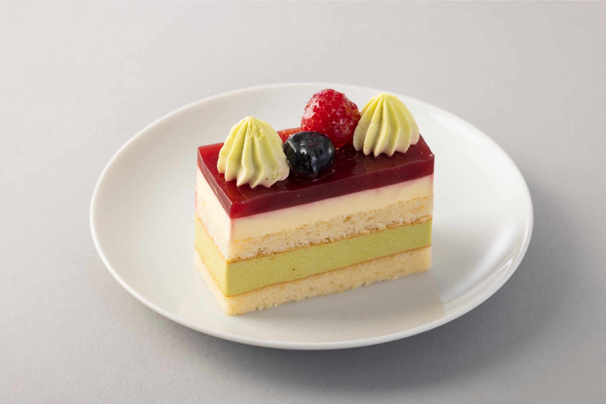 ピスタチオの爽やかな緑色とラズベリーの鮮やかな赤をムースにしました。