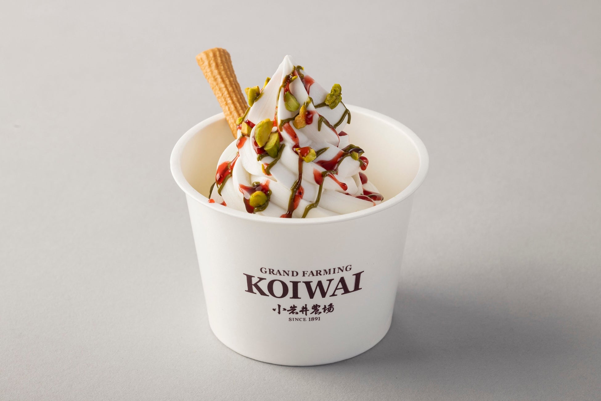 小岩井農場自慢の生乳を使用したソフトクリームに濃厚なピスタチオソース、カリカリのローストピスタチオをトッピングした春らしい彩りの逸品です。
