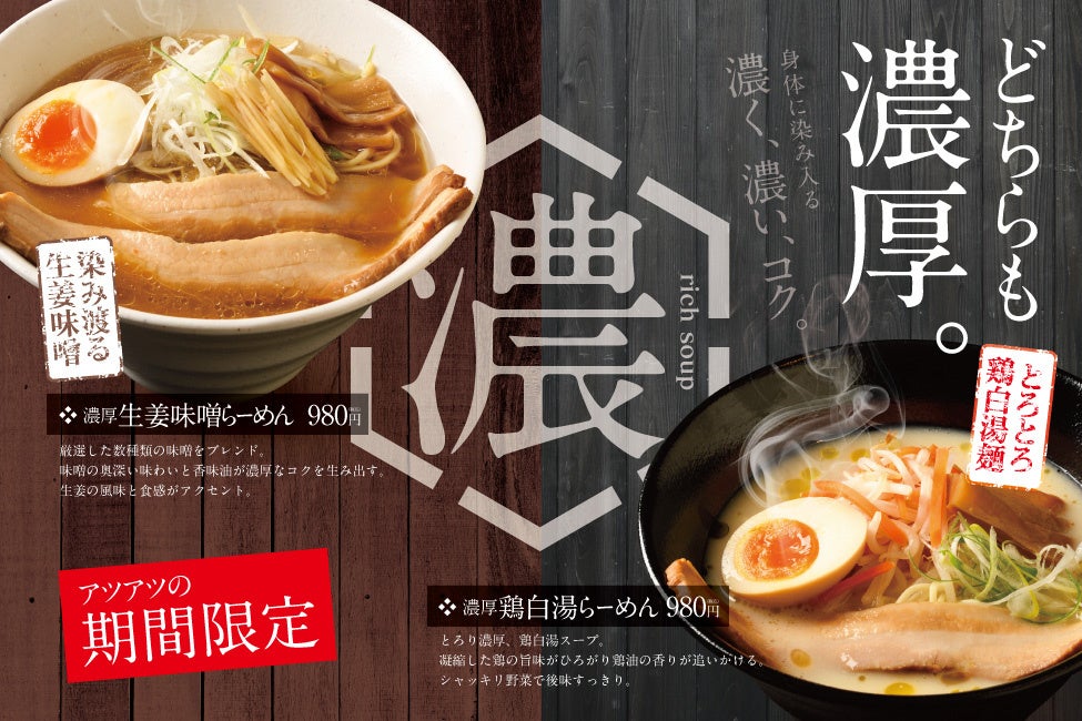 老舗「銀座直久」濃厚コク味噌と濃厚鶏白湯の濃厚2本立て!季節限定メニューを発売