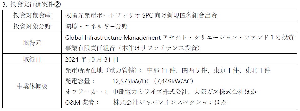 国内インフラを対象にしたインカム・ファンド2号の組成及び初号投資案件の投資実行について