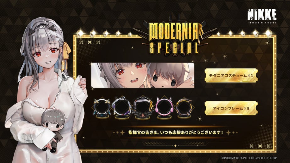 背中で魅せるガンガールRPG『勝利の女神:NIKKE』最新バージョン本日配信人気投票1位に輝いた「モダニア」の限定コスチュームを無料配布!