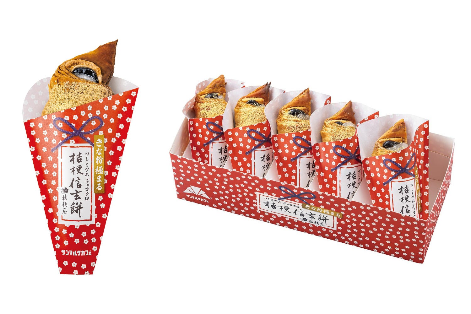「プレミアムチョコクロ 桔梗信玄餅」は、練り込んだ黒糖の優しい甘さと、サクサク食感を両立させた今回だけの特別なクロワッサン生地を使用。国産大豆を使用した香り高いきな粉ホワイトチョコレートと、もちもち食感の求肥フィリング、黒みつクリーム※が合わさり、濃厚で奥深い味わいをお楽しみいただける一品です。黒みつクリームは昨年以上に黒みつの風味を感じられる濃厚なクリームを使用しており、さらに上質で豊かな甘みとコクを味わえます。仕上げには、「桔梗信玄餅」にも使用される香ばしいきな粉をたっぷりトッピング。一口ごとに、きな粉と黒みつの絶妙なハーモニーが広がります。