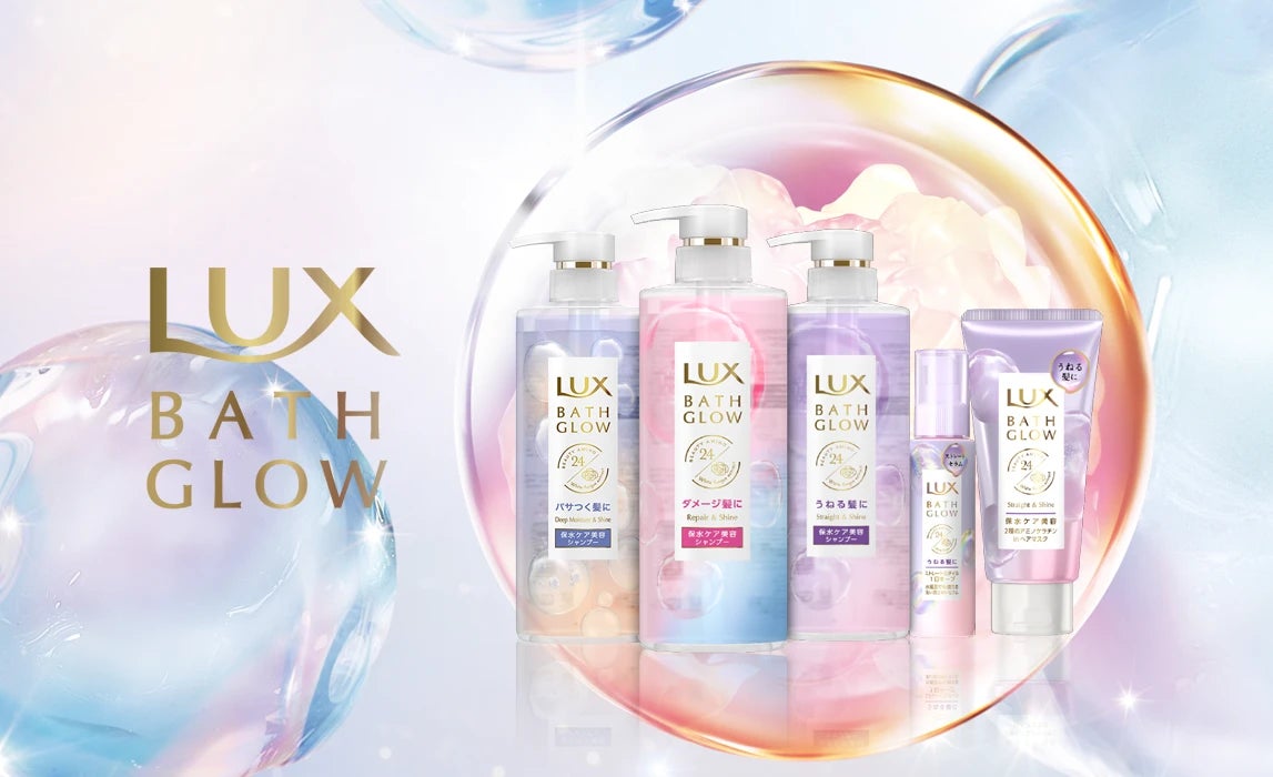 ラックスバスグロウは、お風呂上がりの髪のまとまりやツヤが一日続いてほしい、という多くの声から誕生し、24種の美容アミノ※3とシロキクラゲエキス※4を配合した、洗いたてのようなうるおいとツヤをキープする“保水ケア美容”をコンセプトとした製品です。