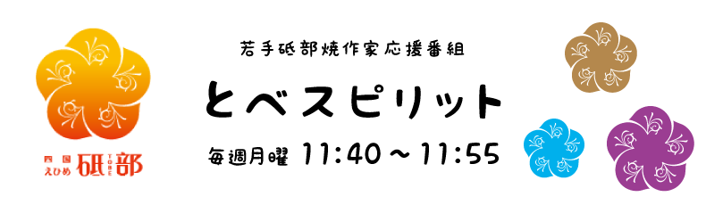 2023年7月にスタートした若手砥部焼作家応援番組「とべスピリット」。砥部焼大使の壽野章子氏が若手陶芸家をフィーチャー。愛媛の陶磁器「砥部焼」の魅力や砥部町の観光スポット・イベント情報なども紹介。