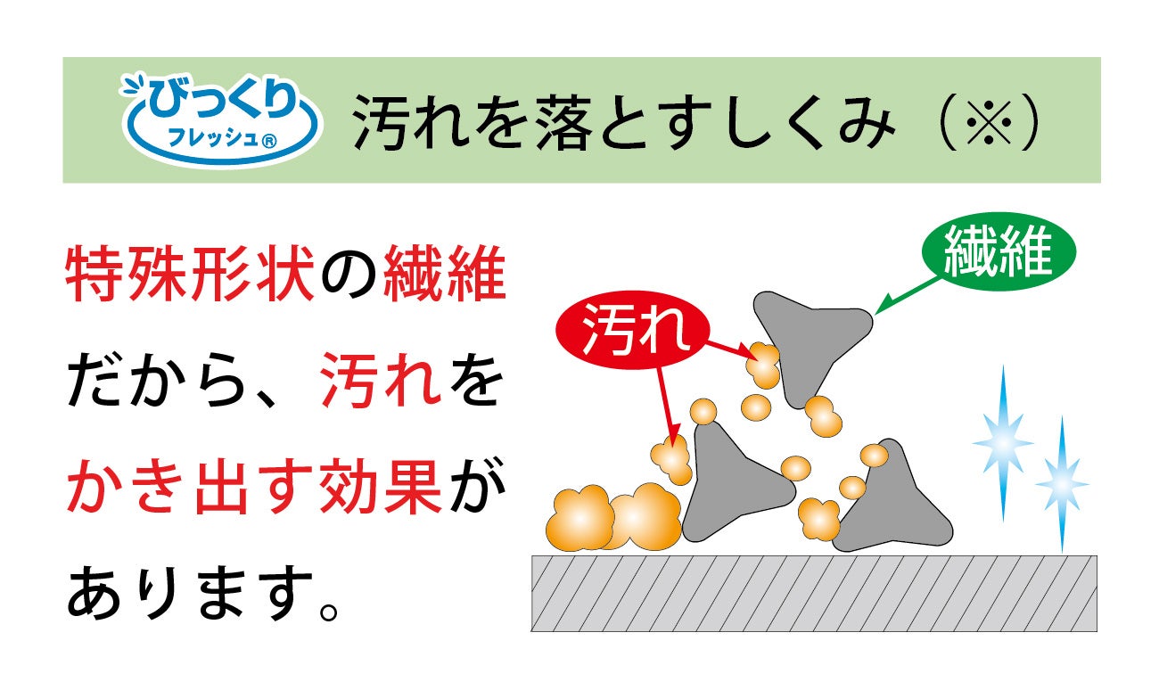 自然素材で造られた建物はデリケートで、薬剤の使用が適さない部分が多くあります。弊社の特殊繊維「びっくりフレッシュⓇ」シリーズのクリーナーは、異形断面形状の繊維を使用しているので、水だけでも汚れを落とすことができます。これまではグリーンとピンクの2色だった不織布部分をグレーにし、伝統的な町家にも馴染むカラーにて新発売いたします。