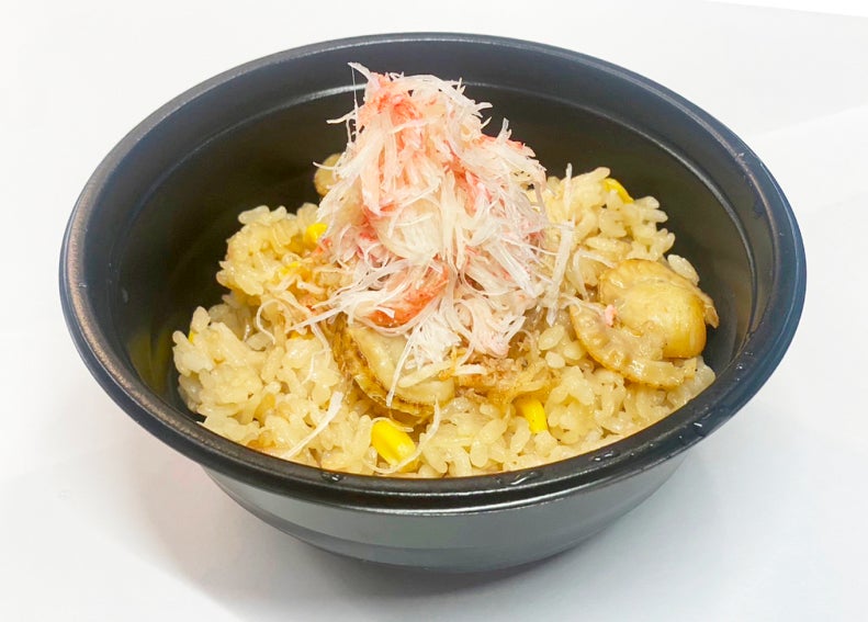 食フェス限定販売!大人気の北海道産の蟹をたっぷりのせたホタテバター炊き込みご飯」と、天然本鮪を醤油漬けにしてその場で炙った「本鮪ステーキ串」!ぜひお楽しみ下さい!