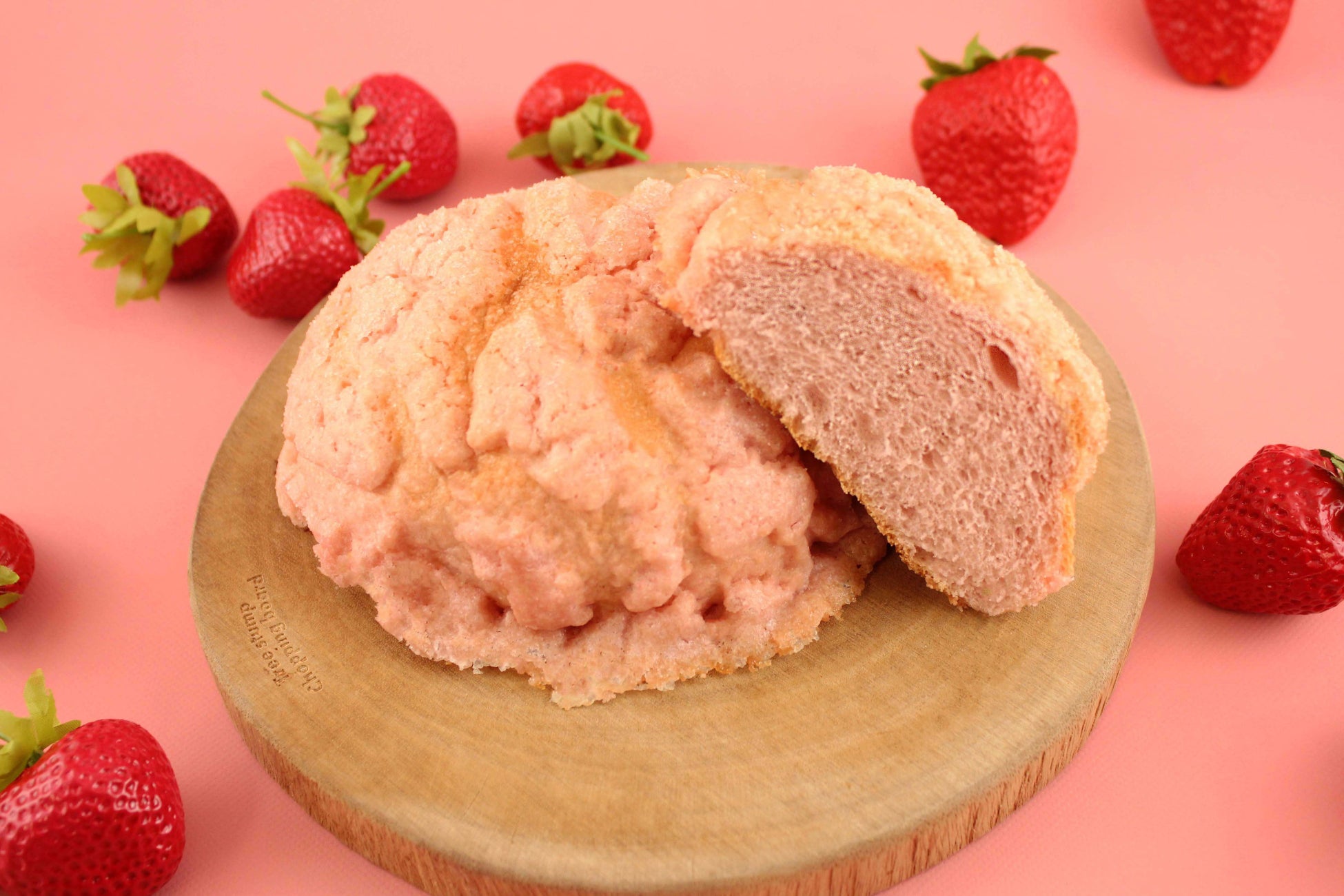 価格:持ち帰り 162円(税込)・店内飲食 165円(税込)栃木県産とちあいかピューレを練り込んだソフトな食感の生地に、いちご風味のクッキー生地をかぶせてふんわりと焼き上げました。