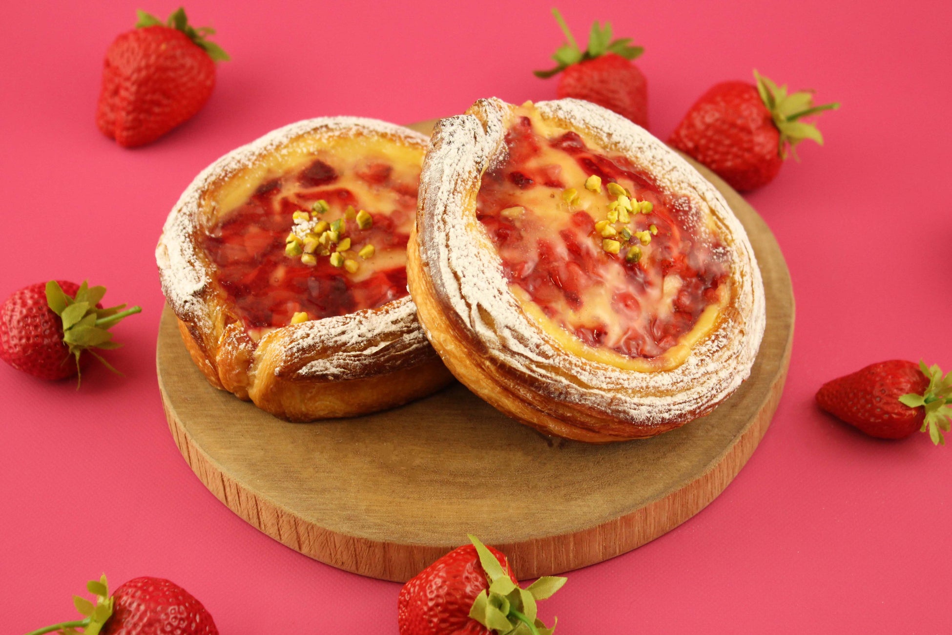 価格:持ち帰り 195円(税込)・店内飲食 198円(税込)ストロベリーとカスタードクリームのサクサク食感のデニッシュです。