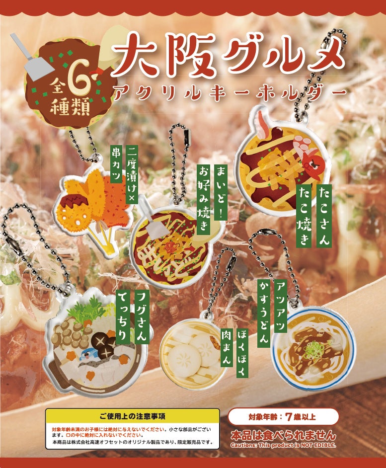 ツーリズムEXPO2024限定「アツアツグルメカプセルトイ」も実施。大阪と東北のグルメがアクリルキーホルダーになって登場いたします。