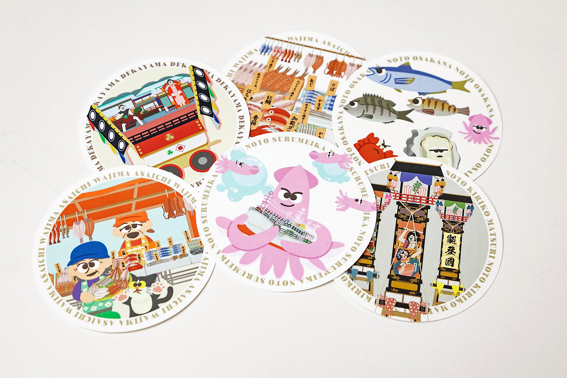 能登半島地震で被災したことをきっかけに、「残しておきたい能登の魅力」をテーマに商品を企画。輪島の朝市、祭り、食をテーマにイラスト化し、商品化しました。