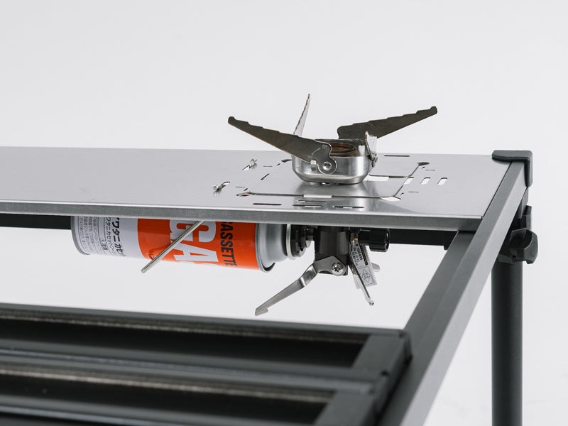 ガス缶を天板下や横に配置できるため、テーブル上を広く使うことが可能。