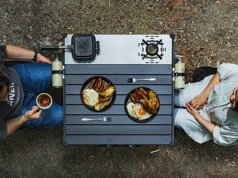 ガス缶を天板の下や横に配置できるため、テーブルの上を広く使いながら料理や団らん時間を楽しめます。