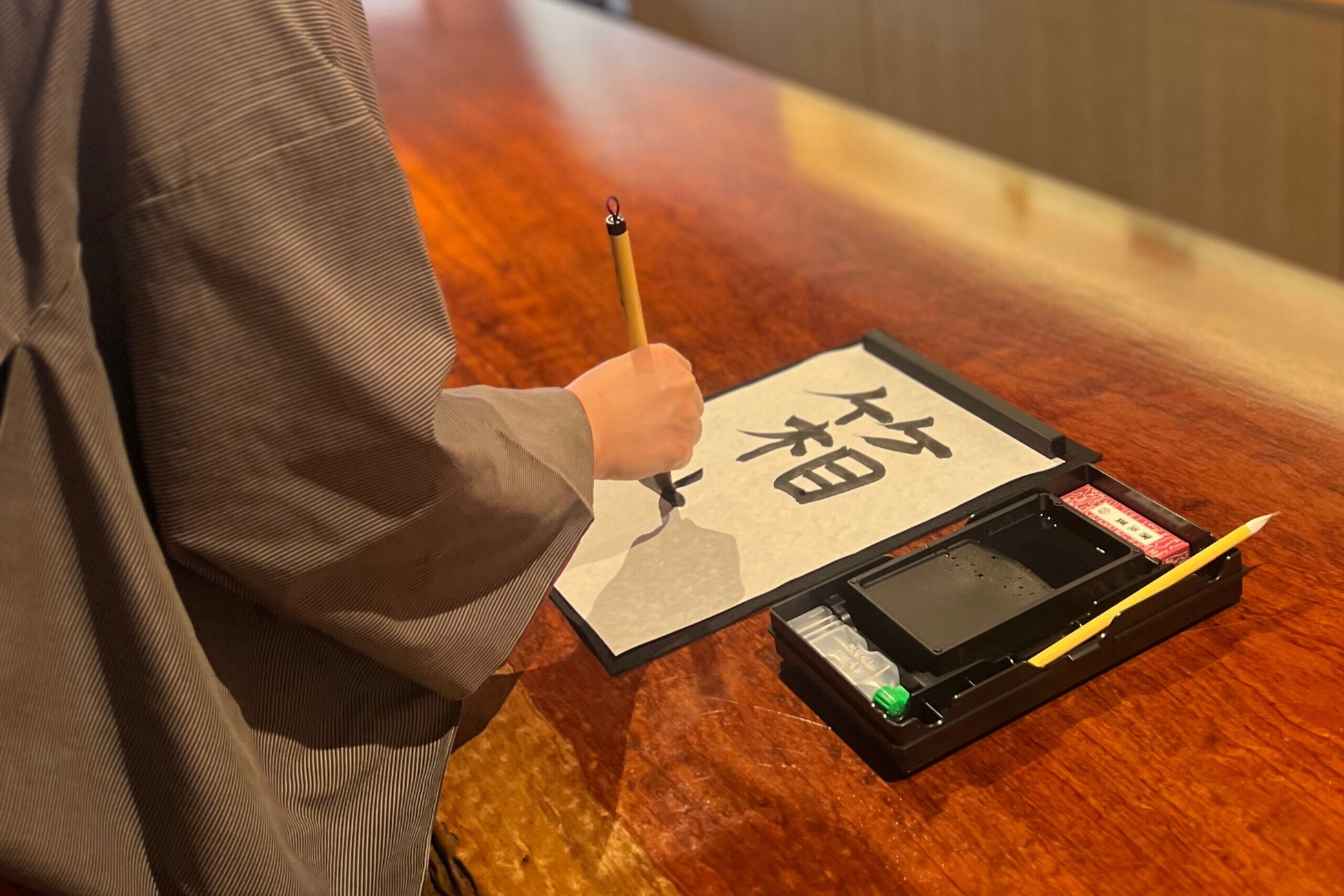 ダイニングカウンターにて書初め体験ができ、使用した書道セットをお持ち帰りいただけるプランです。