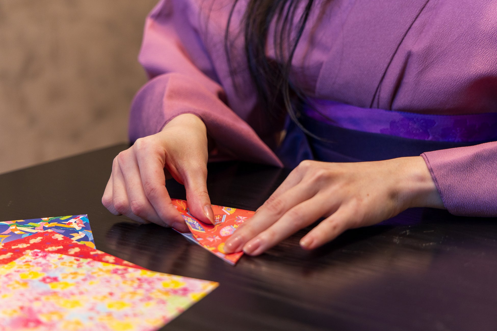 スタッフ指導のもと、鶴や花などさまざまなデザインの折り紙を作ることができるプランです。(松坂屋本店では、折り紙ブックのプレゼント付き)