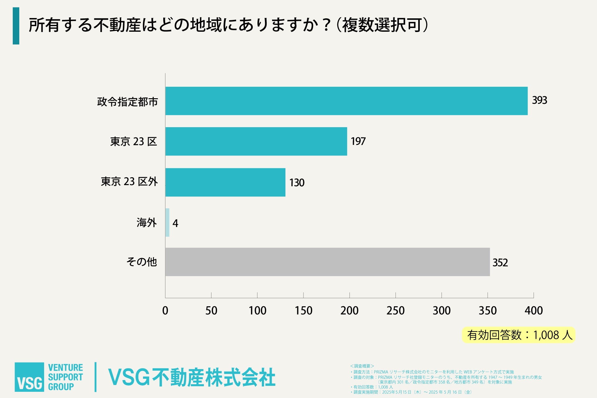 不動産を所有する1947~1949年生まれの男女(東京都内 301名/政令指定都市 358名/地方都市 349名)を対象に実施。