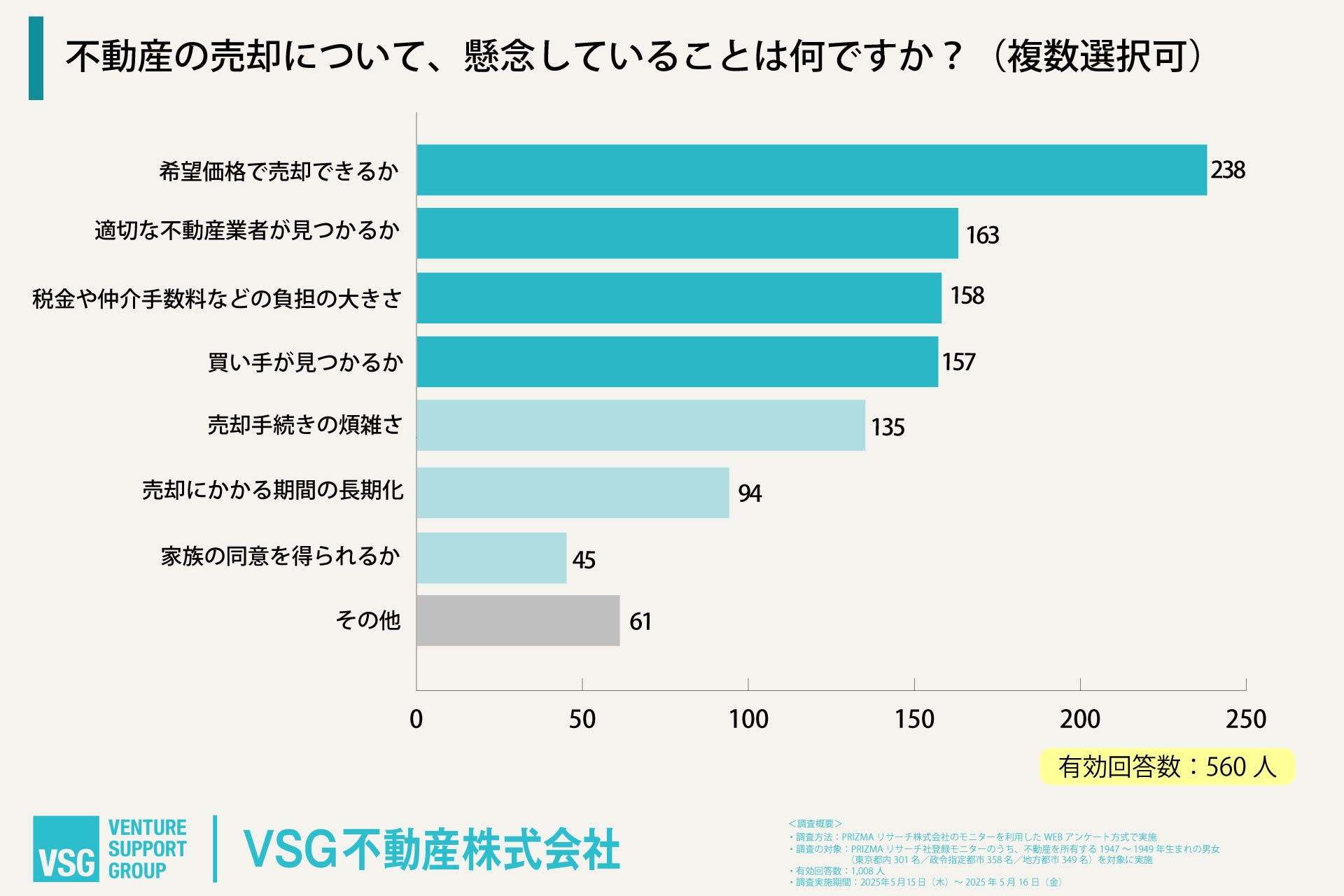 ■不動産売却時の懸念、希望価格で売れるかが最大の不安—税金や手数料の負担も上位に