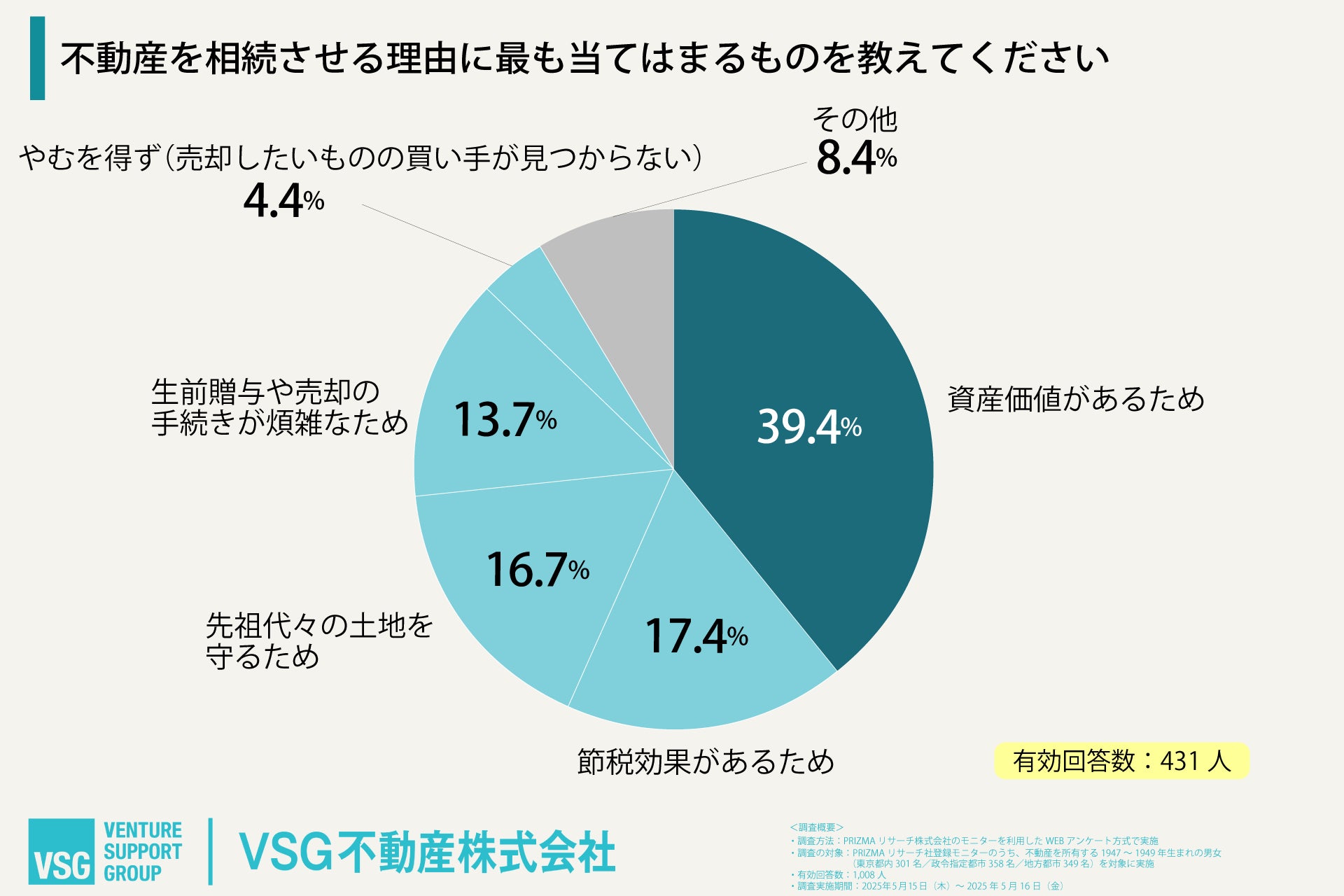 不動産相続、資産価値が最大の理由 — 節税効果を期待する回答者も多数
