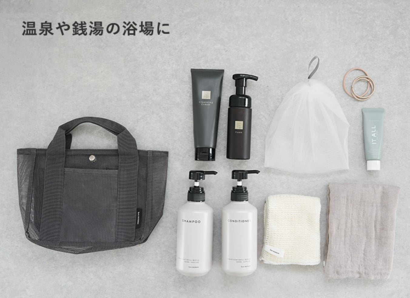 頻繁に通いたいからこそ、つど持ち物を準備するのは面倒・・・という時も、スパバッグにいつもの温泉グッズをセットしておけば◎。