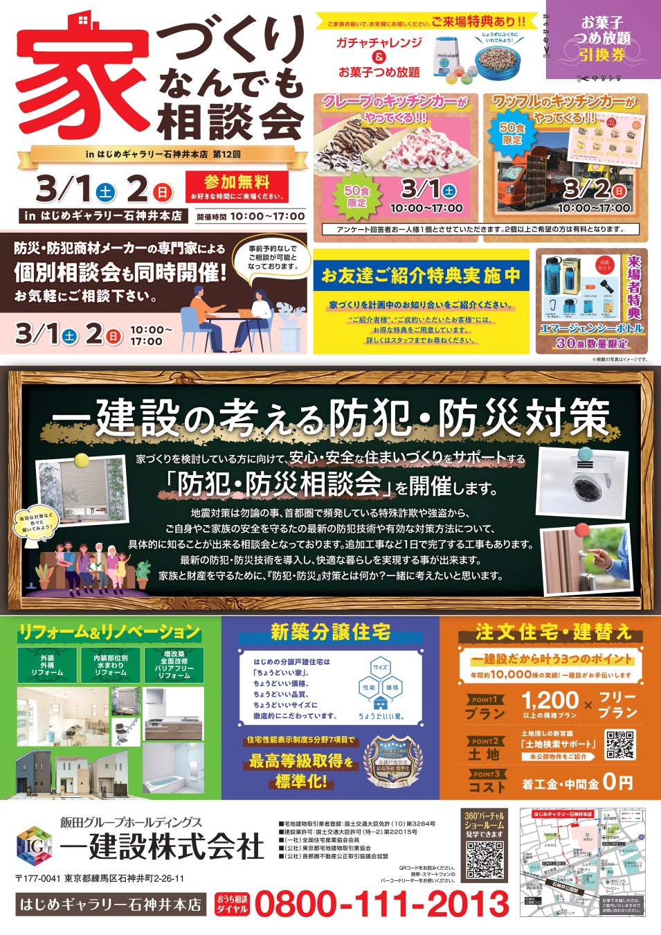 【一建設株式会社】3月1日(土)・2日(日)に「はじめギャラリー石神井本店」で、家づくりの疑問や不安を解決する「第12回 家づくりなんでも相談会」を開催