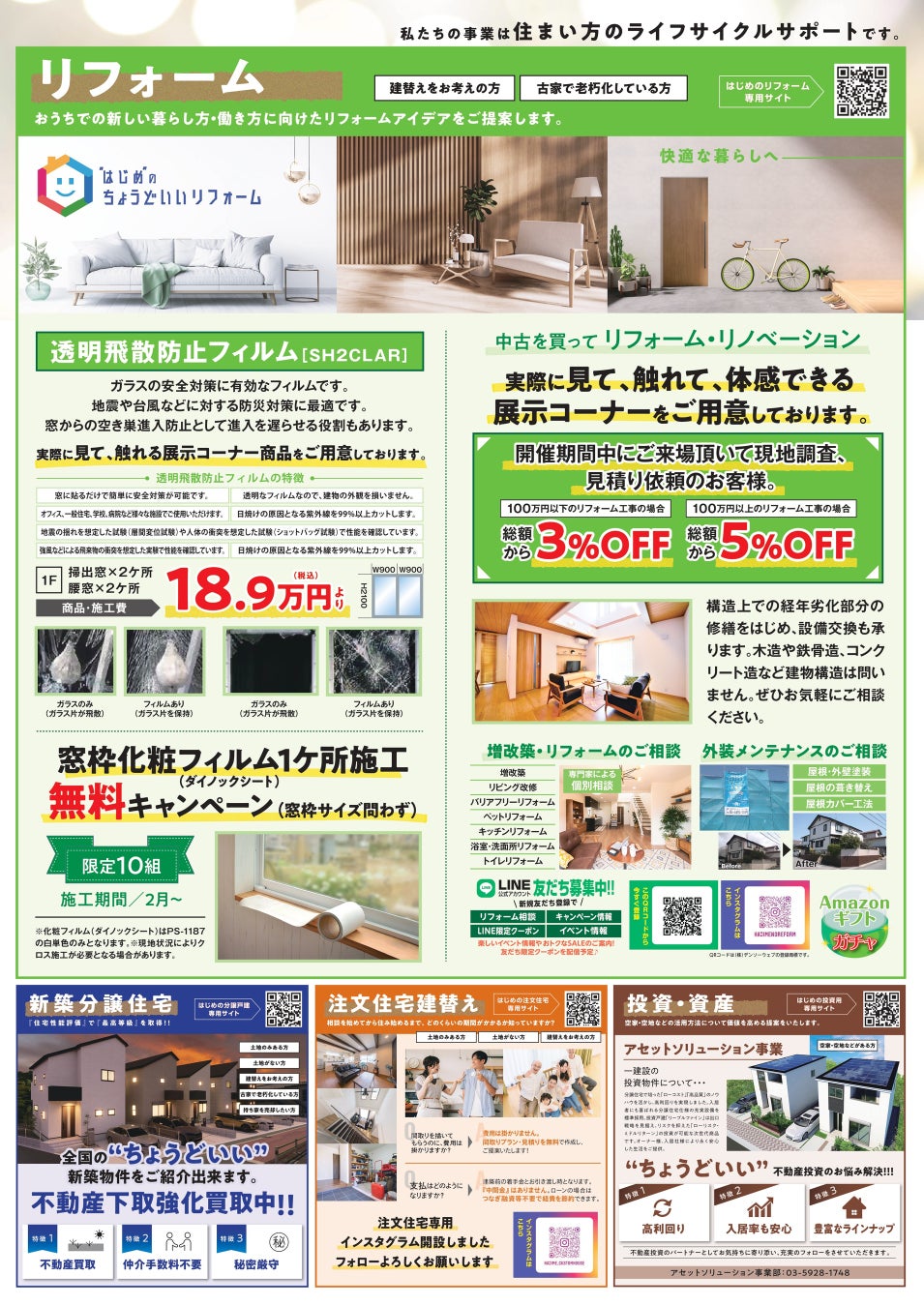 ・10組限定で、窓枠化粧フィルム1ヶ所施工無料キャンペーン(窓枠サイズ問わず)