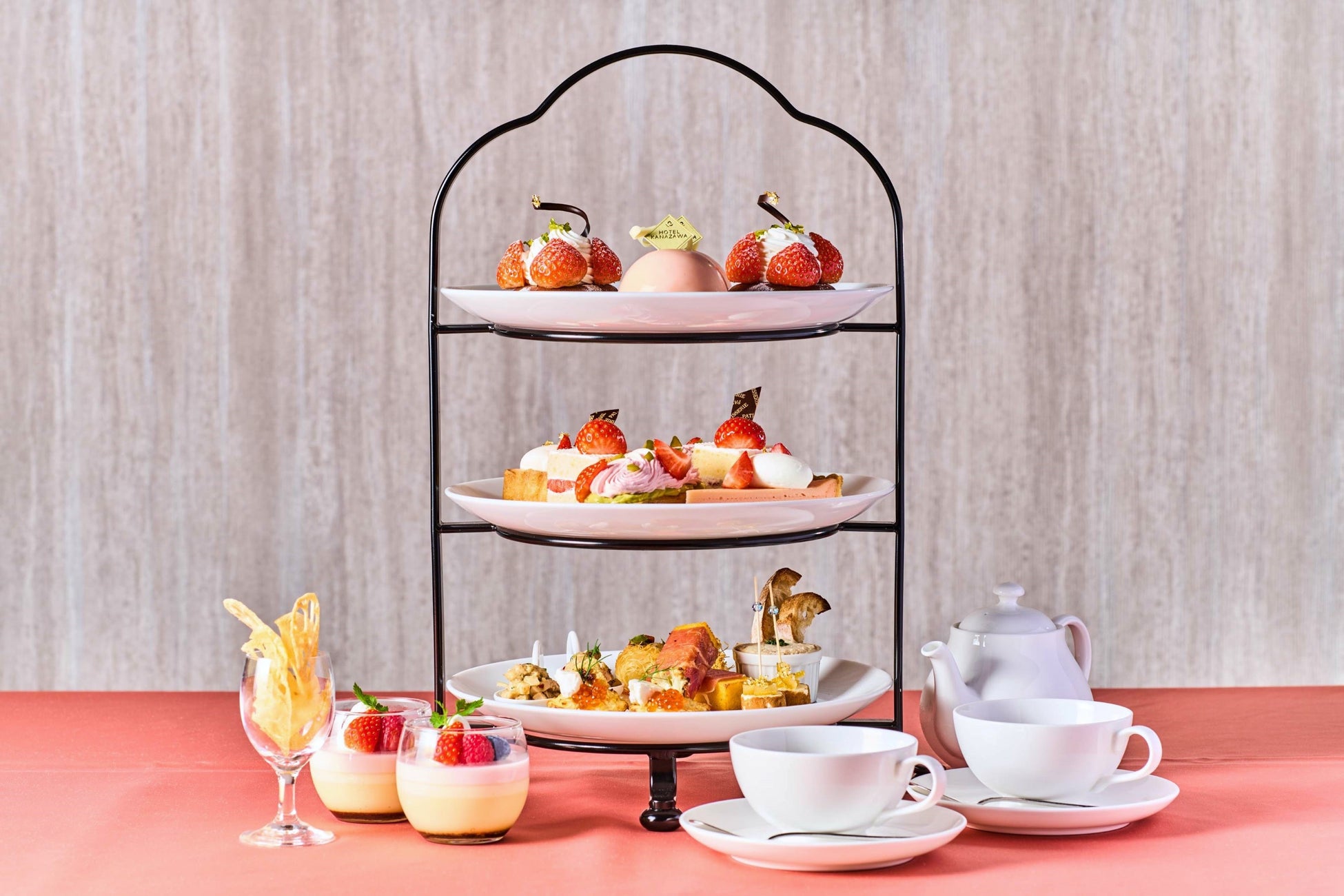 四季折々の素材にこだわった料理を提供する株式会社ホテル金沢(所在地:石川県金沢市堀川新町1-1、総支配人:小嶋 一夫 以下ホテル金沢)は1階レストラン「DINING TSUZUMI」にて、目にも華やかな苺スイーツとオリジナリティ溢れるセイボリーが詰まったストロベリーアフタヌーンティー「金鼓」〈KONKU〉を滞在中に楽しめる宿泊プランを販売いたします。女子旅はもちろん、恋人やご家族と一緒に、金沢の旅の思い出をより華やかに彩りませんか。