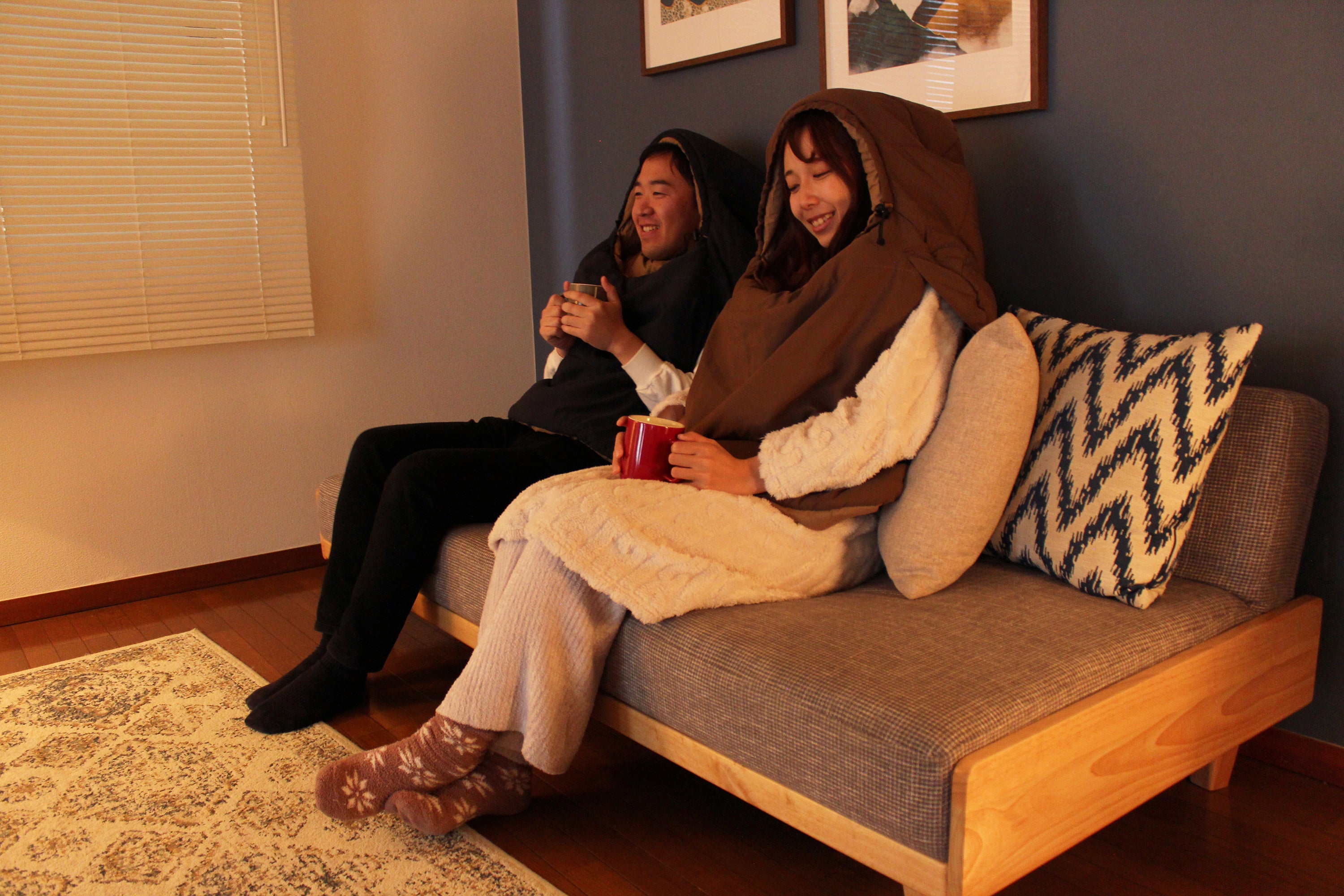 手が出せるので、身動きが自由に取れ、就寝時だけではなく部屋でのリラックス時、アウトドアなどのあらゆる寒さ対策にも使えます。